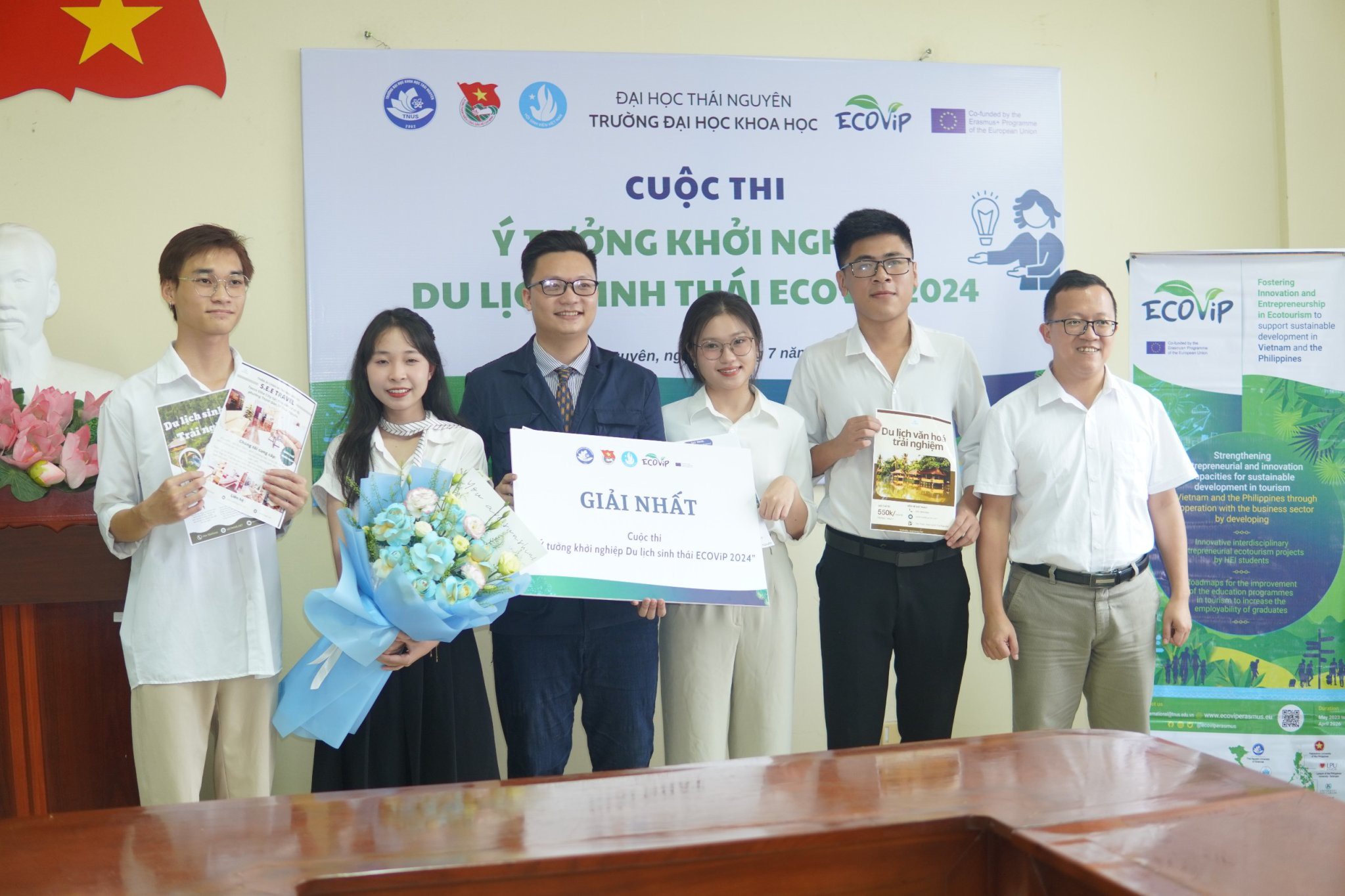 Nhìn lại hành trình tham dự cuộc thi “Ý tưởng khởi nghiệp du lịch sinh thái 2024” với ý tưởng: Dự án “Tổ hợp dịch vụ lưu trú và tour du lịch sinh thái”, Team đạt giải nhất đã luôn nỗ lực không ngừng và say mê thực hiện. Cuộc thi nằm trong khuôn khổ Dự án Thúc đẩy đổi mới sáng tạo và khởi nghiệp trong lĩnh vực du lịch sinh thái để hỗ trợ phát triển bền vững tại Việt Nam và Philippines (ECOViP) với mục đích tạo ra sân chơi về khởi nghiệp, khuyến khích tinh thần khởi nghiệp của sinh viên. Trường Đại học Khoa học là đơn vị thực hiện dự án, thúc đẩy học sinh, sinh viên lĩnh vực du lịch sinh thái, tìm kiếm những ý tưởng, sáng kiến và giải pháp cụ thể, thiết thực để ươm tạo những dự án khởi nghiệp tiềm năng.