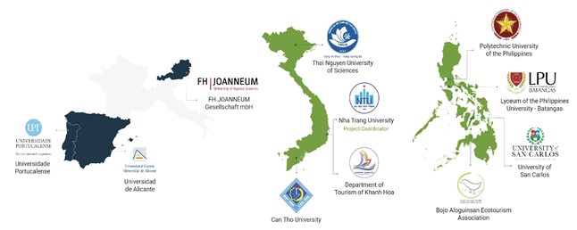 Hệ thống các trường Đại học tham gia thực hiện dự án ECOVIP thuộc châu Âu, Việt Nam và Philippines.