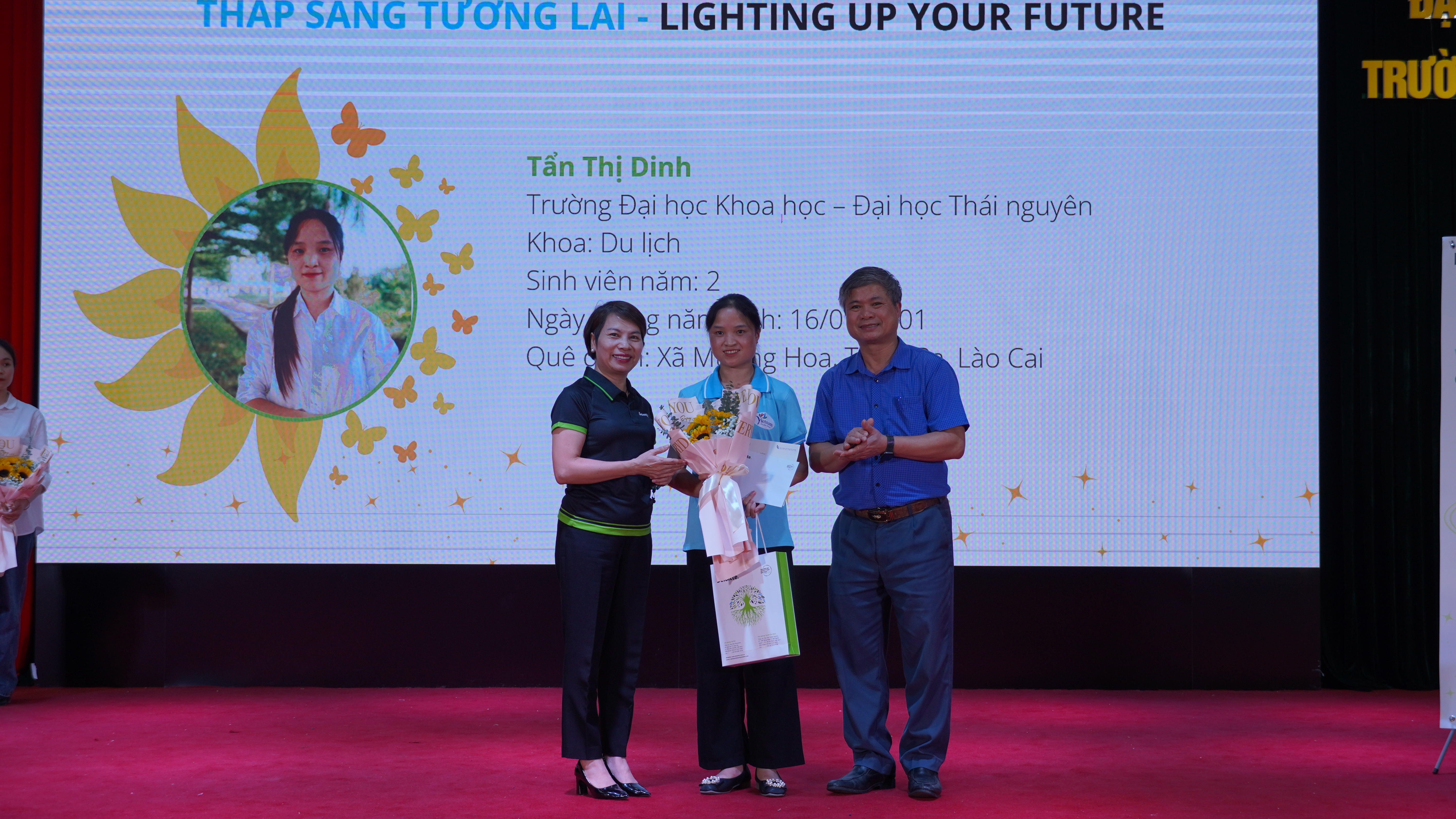 Trường Đại học Khoa học vinh dự có 02 bạn sinh viên được nhận học bổng là Tẩn Thị Dinh (Lớp Quản trị Dịch vụ Du lịch và Lữ hành K20B) và Nguyễn Thị Hà (Lớp Hàn Quốc học K20A). Được biết cả hai bạn đều sinh viên dân tộc thiểu số thuộc hộ nghèo và cận nghèo.