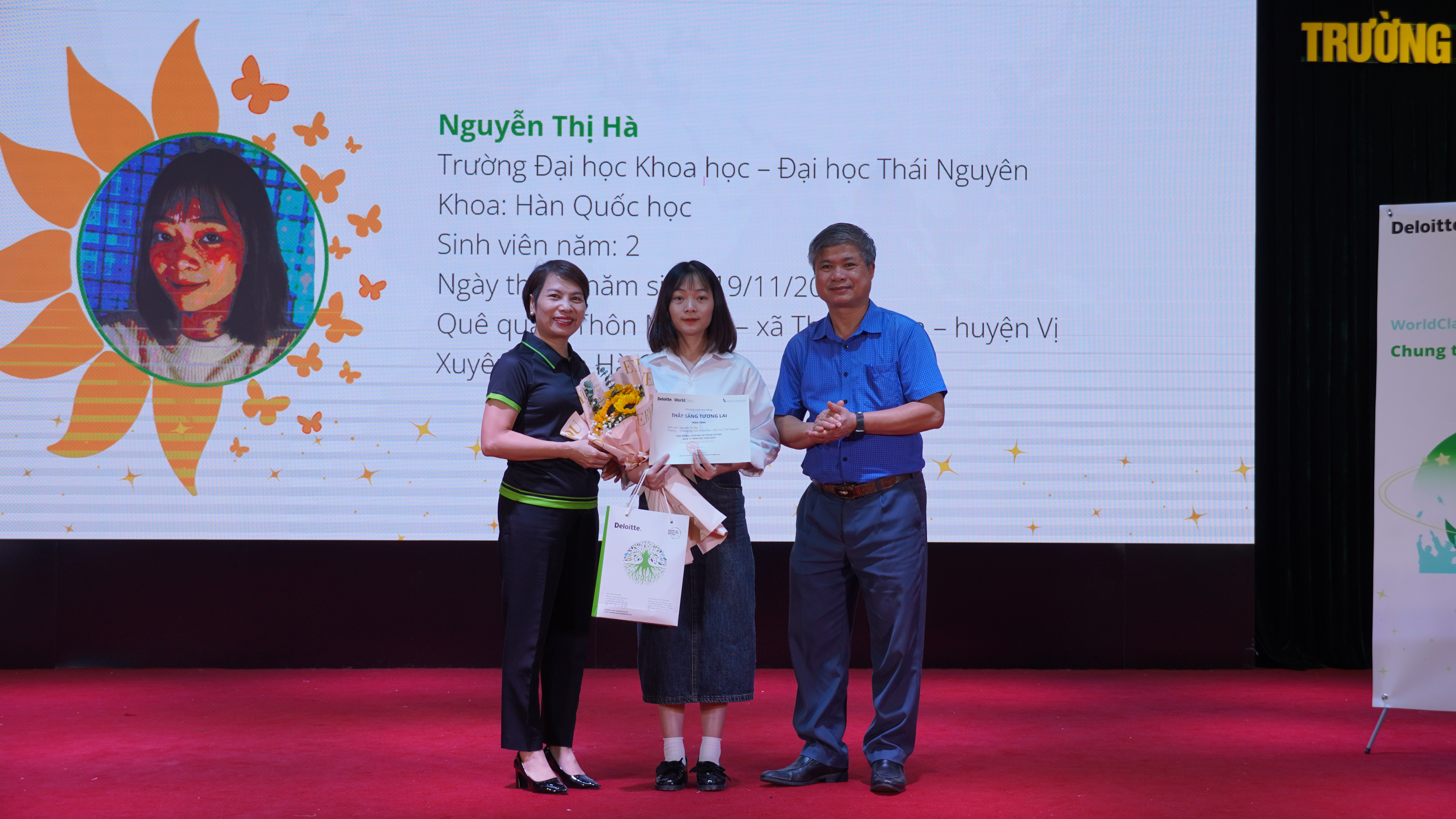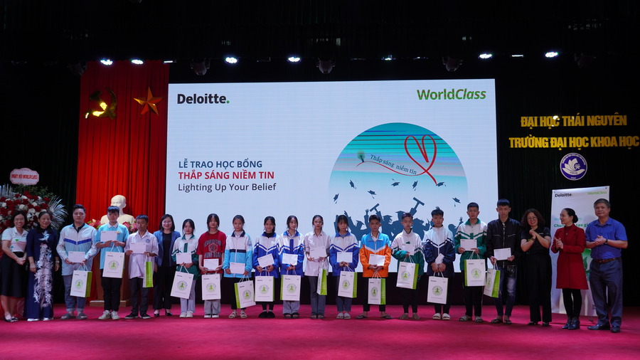 Chiều ngày 24/11/2023, tại Hội trường lớn Trường Đại học Khoa học - Đại học Thái Nguyên đã diễn ra Ngày hội WorldClass Việt Nam và trao học bổng Thắp sáng tương lai - Lighting Up Your Future năm học 2023-2024 do Đại học Thái Nguyên và Delloite Việt Nam tổ chức.