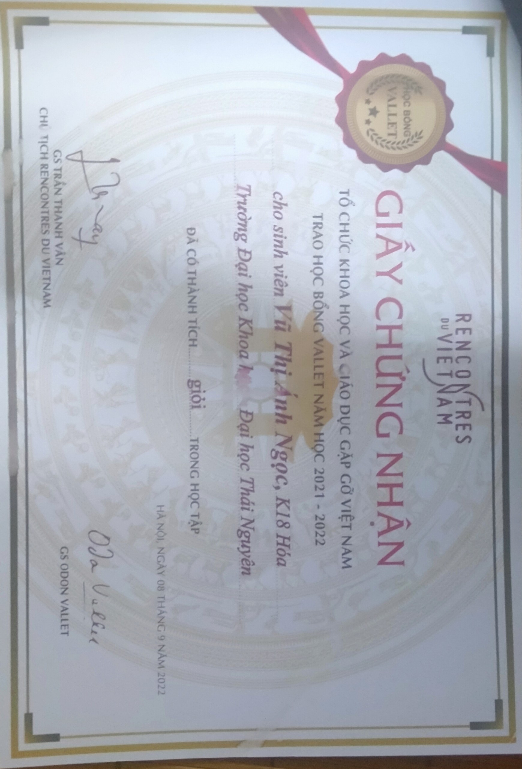 Sáng 9-9, tại Hà Nội, Tổ chức Khoa học và Giáo dục “Gặp gỡ Việt Nam” tổ chức trao học bổng Vallet năm 2022 cho 152 sinh viên, học viên sau đại học ưu tú đại diện cho sinh viên tại các cơ sở đào tạo các tỉnh phía Bắc, trong đó Trường Đại học Khoa học vinh dự 02 sinh viên được nhận học bổng này.