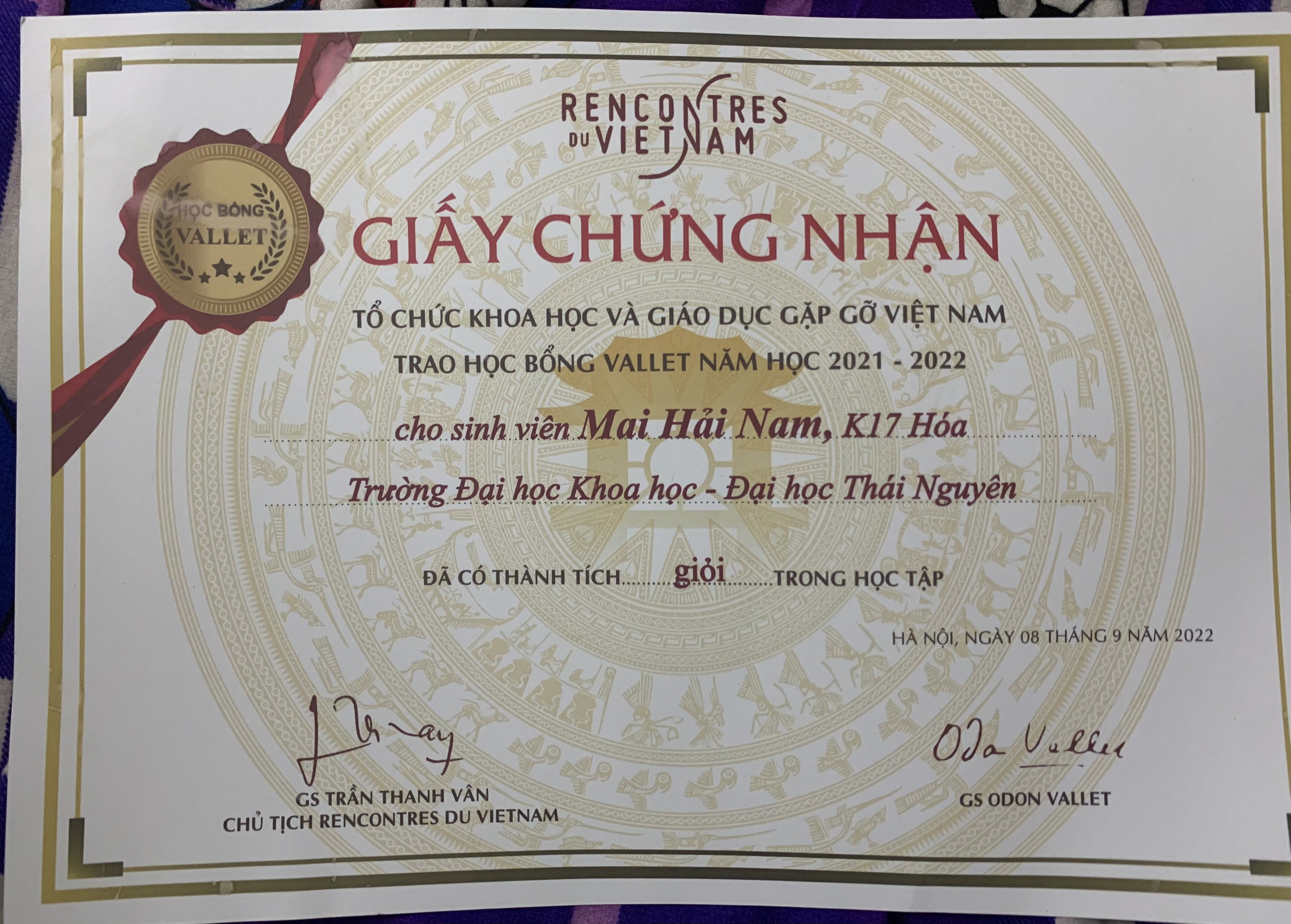Khi vinh dự nhận được học bổng Vallet, bạn Mai Hải Nam chia sẻ: “Đây là sự khích lệ rất lớn dành cho em quá trình học tập và rèn luyện hết mình. Khi học tập tại Trường Đại học Khoa học em có cơ hội tiếp cận với những nguồn học bổng khuyến học như thế này. Học bổng này sẽ giúp em có điều kiện đầu tư, nâng cao các kỹ năng mềm cũng như trình độ ngoại ngữ để hoàn thiện bản thân hơn nữa”.