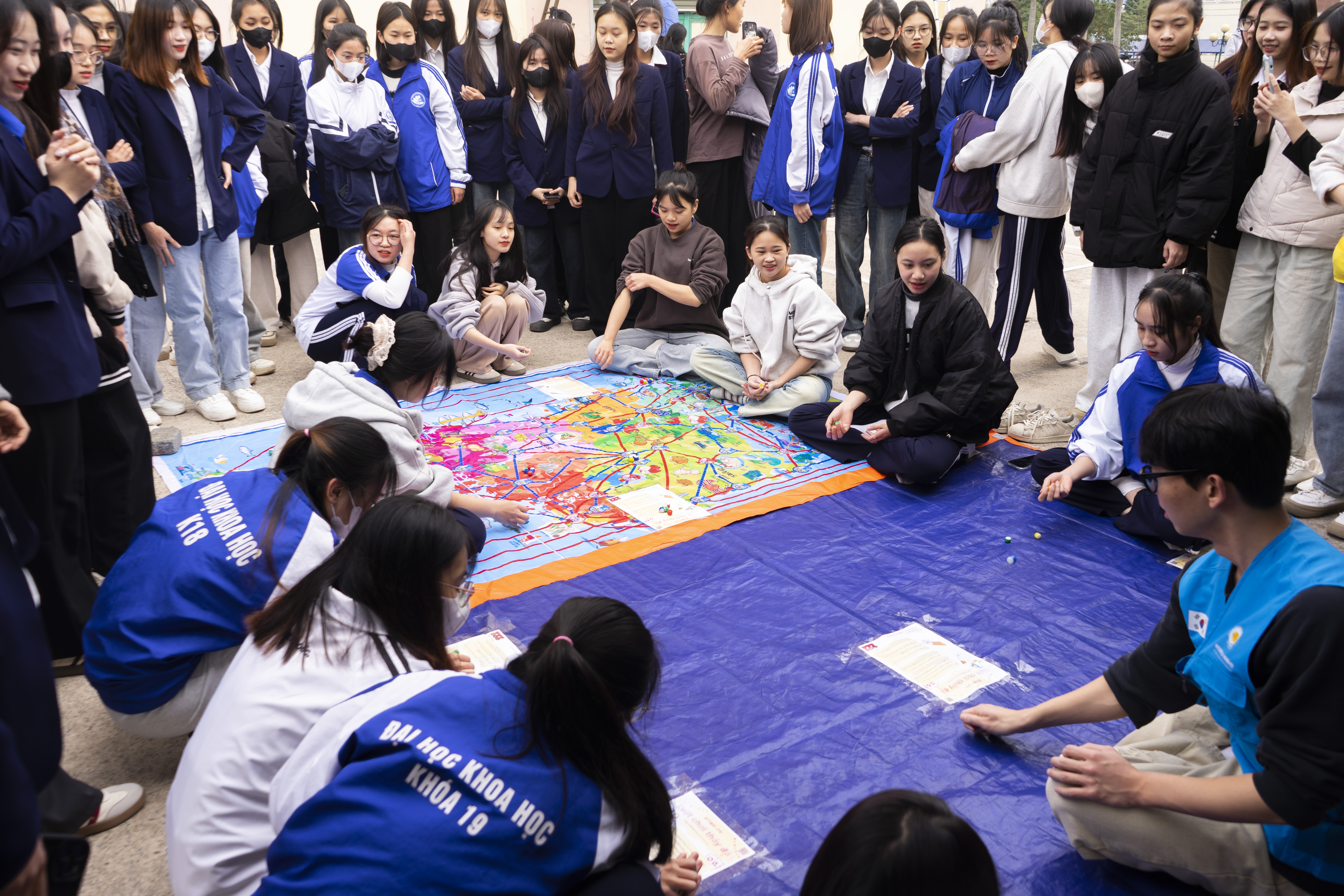 Tham gia trải nghiệm các trò chơi truyền thống Hàn Quốc. Bên cạnh các hoạt động thuyết trình và giao lưu học thuật, sinh viên hai trường còn hòa mình vào không khí vui tươi với loạt trò chơi truyền thống Hàn Quốc. Các bạn được thử sức với đá cầu (족구), ném tiêu (투호), ném sỏi (공기놀이), và kéo co (줄다리기) — những trò chơi dân gian mang đậm bản sắc văn hóa Hàn Quốc.