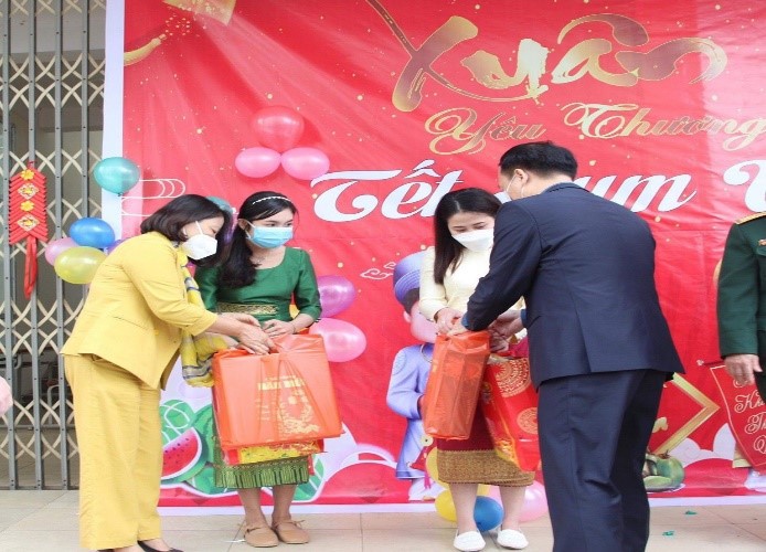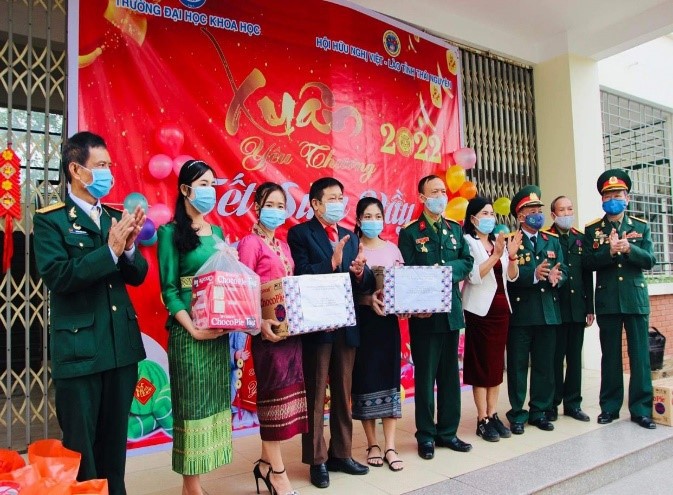Do dịch bệnh Covid-19 diễn biến rất phức tạp nên trong dịp tết Nguyên Đán năm 2022 chúng không được về Lào. Trong thời gian nghỉ Tết, đại diện Hội Hữu nghị Việt – Lào cùng các thầy cô lãnh đạo Trường, Khoa đã đến thăm và trao quà Tết cho toàn thể các bạn sinh viên. Chúng em thực sự cảm ơn các cô chú đã trao món quá vô cùng ý, cảm ơn các thầy cô đã quan tâm, dành nhiều tình cảm lớn cho chúng em. Không những thế, ngày Tết chúng em còn được các cô giáo mời đi ăn Tết ở nhà. Vào nhân dịp ngày Quốc khánh Lào 2/12, là một ngày vô cùng quan trọng và ý nghĩa với các bạn sinh viên, đại diện lãnh đạo Nhà trường đã vào ký túc xá tặng hoa và quà cho lưu học sinh Lào. Chúng em hiểu đây là sự quan tâm đặc biệt của các thầy cô giáo và Nhà trường, điều này khiến cho các bạn LHS Lào ngày càng kính trọng và vô cùng yêu quý các thầy cô Trường Đại học Khoa học.