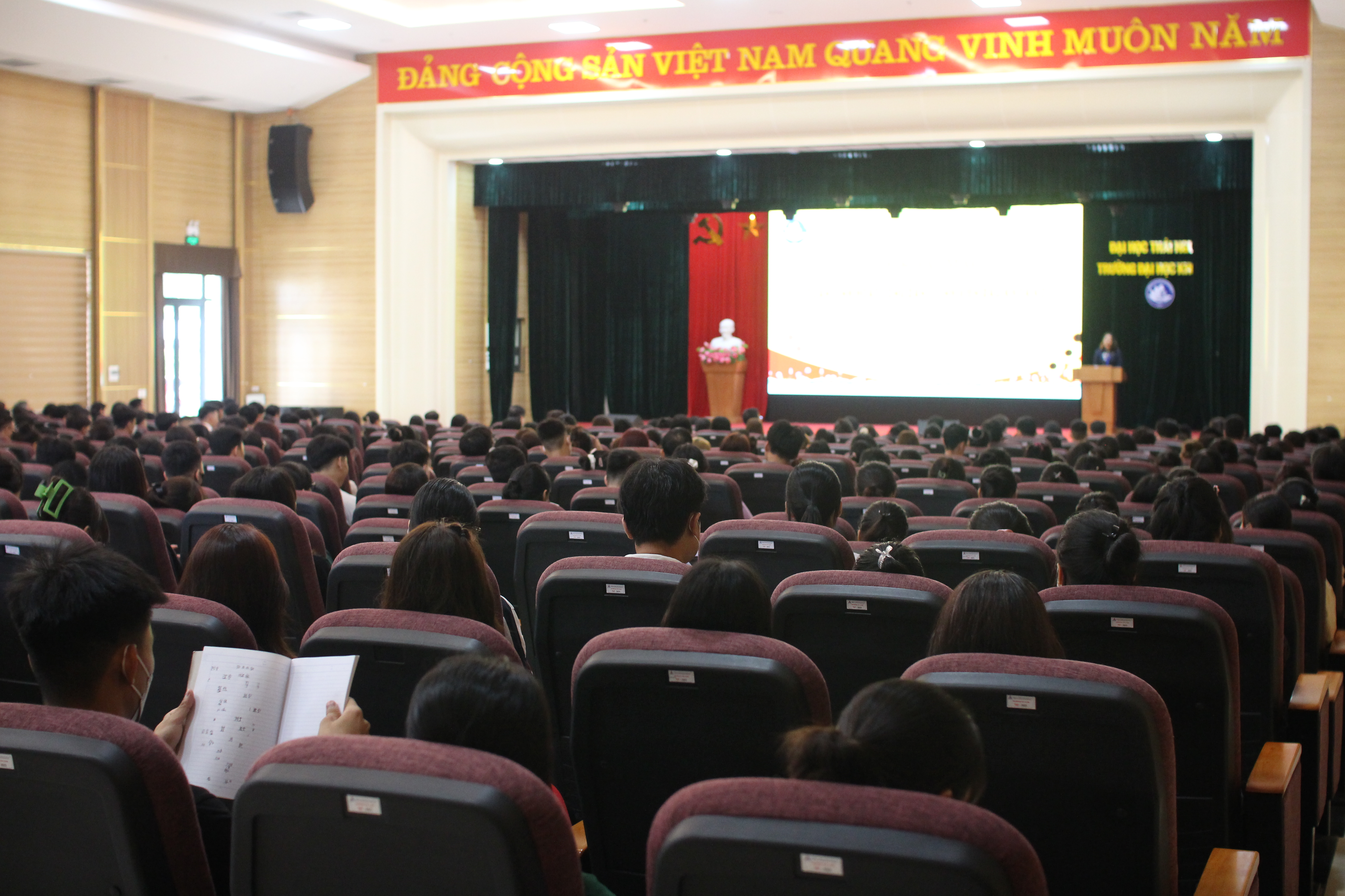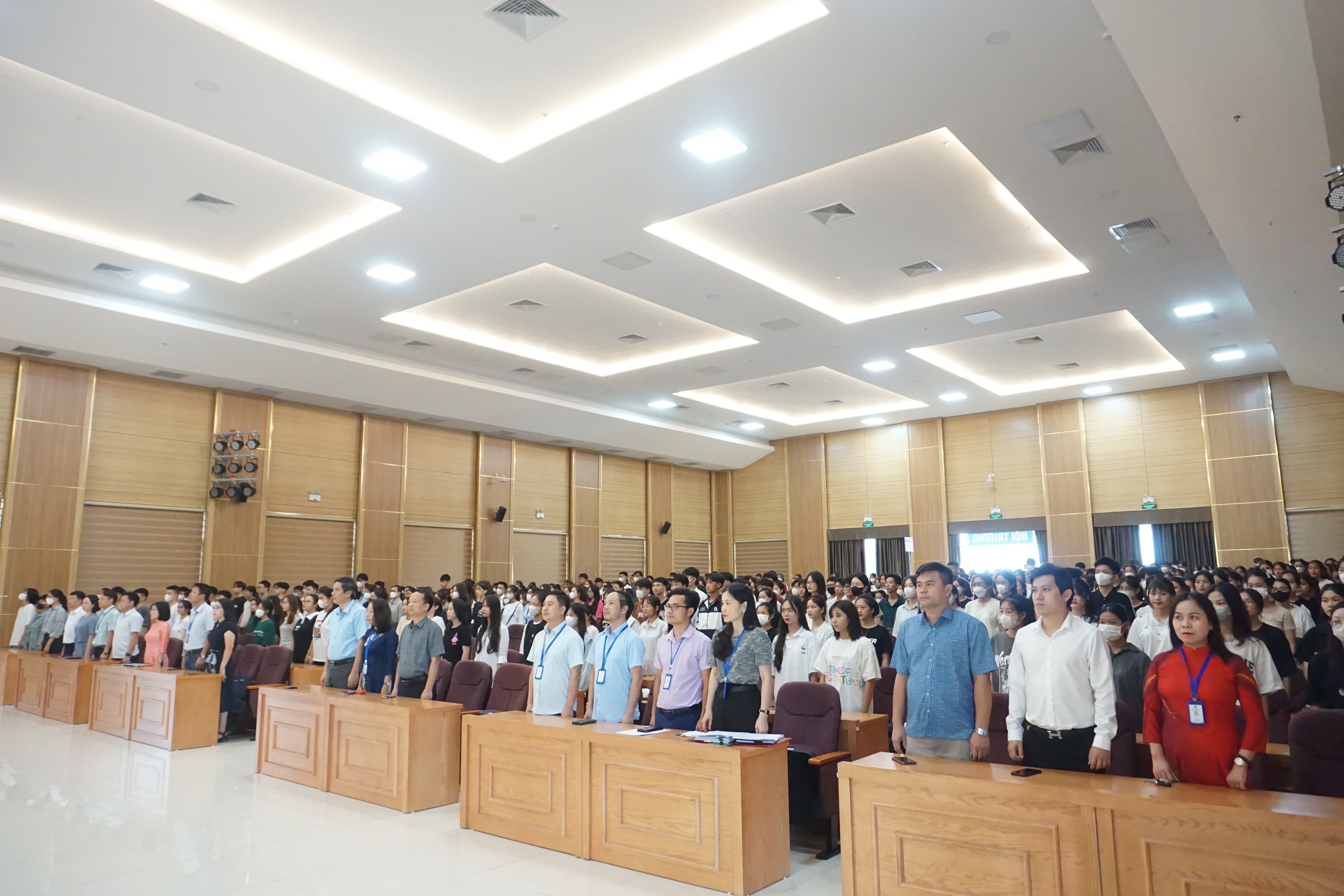 Đại biểu tham dự chương trình có: PGS.TS. Nguyễn Văn Đăng - Hiệu trưởng Nhà trường; PGS.TS. Ngô Văn Giới - Chủ tịch Hội đồng trường; PGS.TS. Phạm Thị Phương Thái - Phó Hiệu trưởng và đại diện các thầy cô là lãnh đạo, cán bộ viên chức, giảng viên thuộc các đơn vị trong toàn Trường cùng gần 1000 tân sinh viên khoá 21.