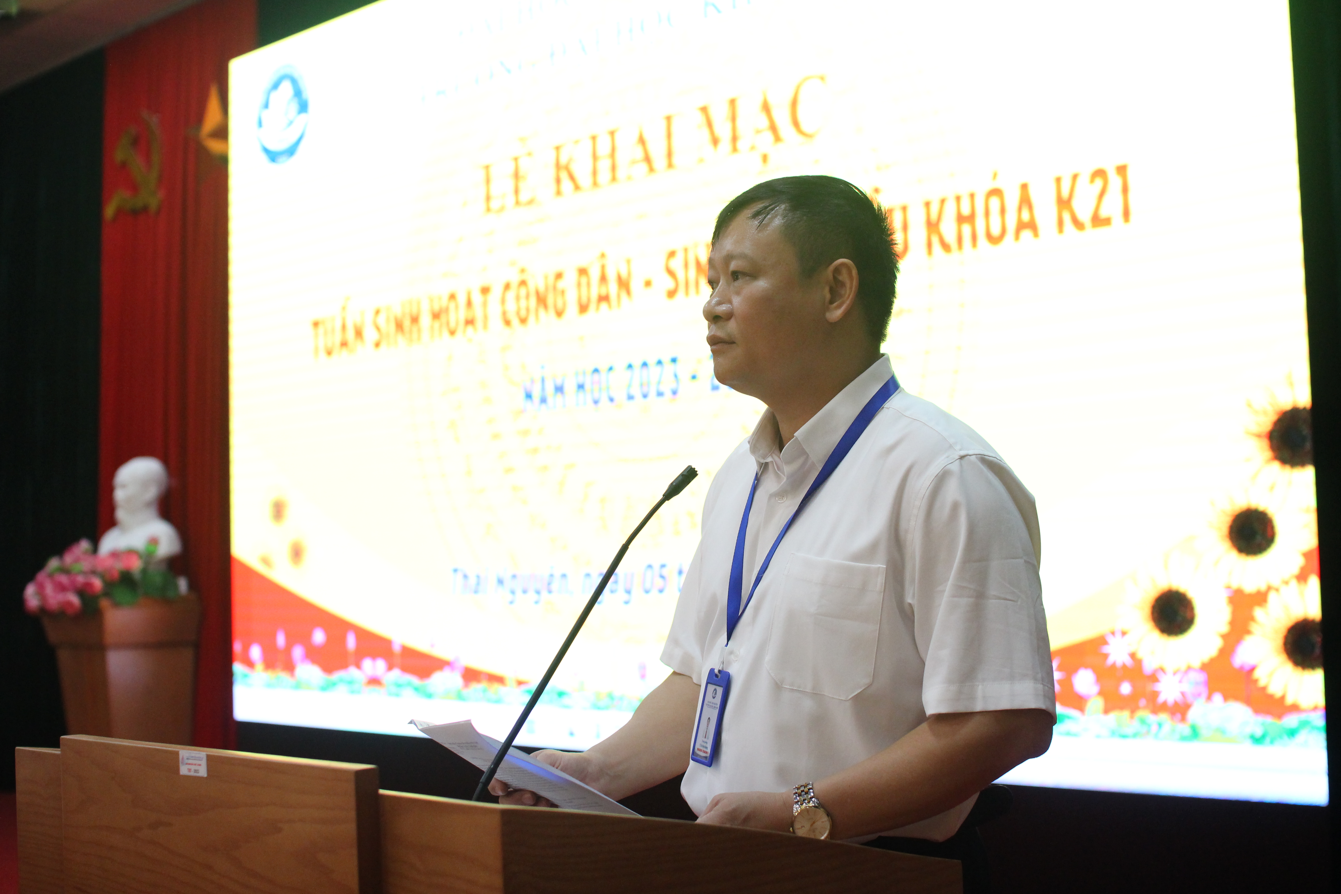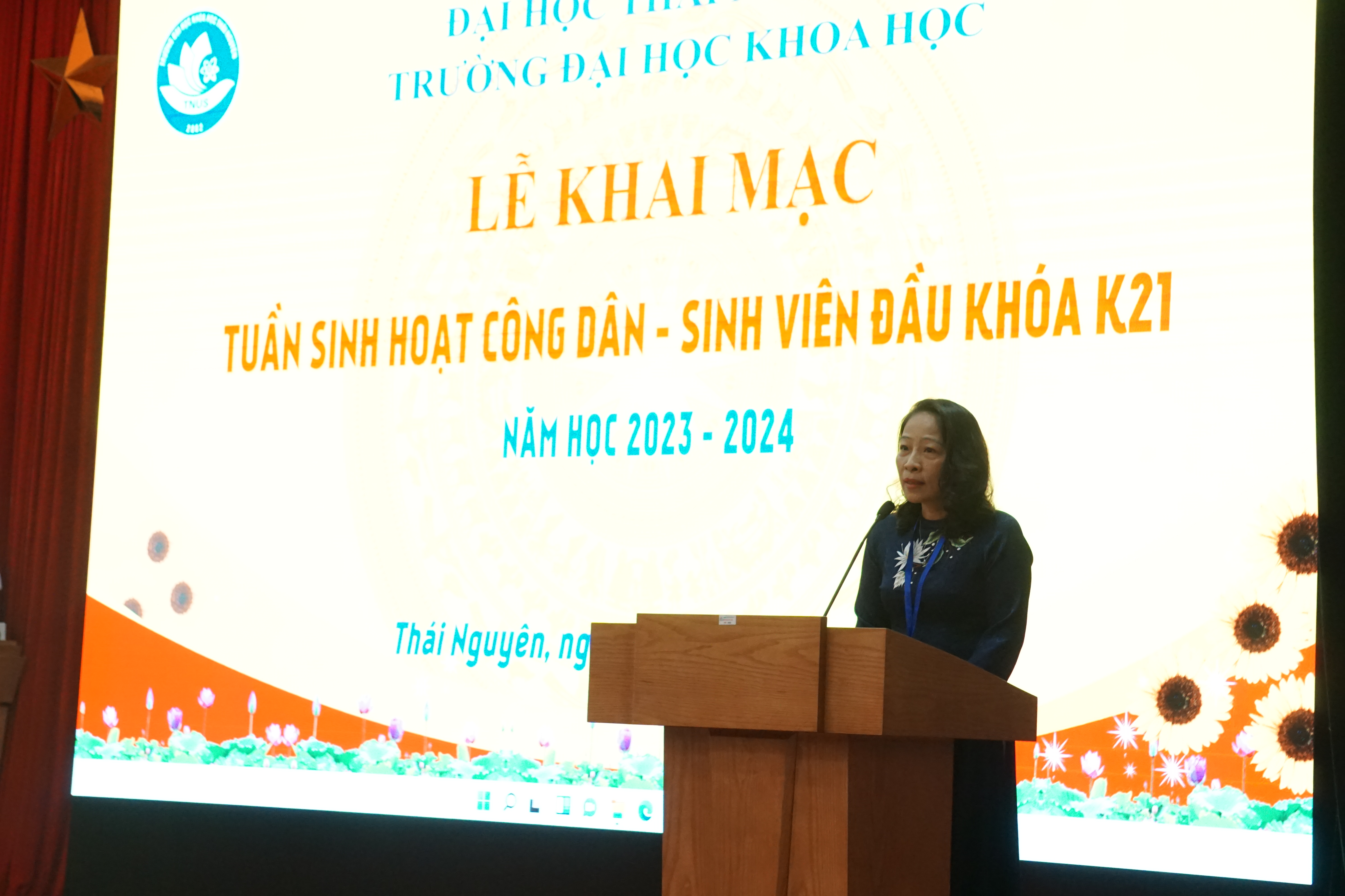 Khai mạc Tuần sinh hoạt công dân - sinh viên đầu khoá, PGS. TS. Phạm Thị Phương Thái - Phó Hiệu trưởng Nhà trường, phát biểu chào mừng các tân sinh viên K21 nhập học đợt 1 và đã chính thức trở thành sinh viên của Nhà trường. Thay mặt lãnh đạo Nhà trường, cô cũng đã cảm ơn các em đã tin tưởng lựa chọn Trường Đại học Khoa học là bến đỗ trong hành trình khám phá tri thức và chuẩn bị hành trang lập thân, lập nghiệp. Bên cạnh đó, các bạn sinh viên cũng đã được PGS.TS Phạm Thị Phương Thái đã giới thiệu những thông tin tổng quan về Trường Đại học Khoa học.