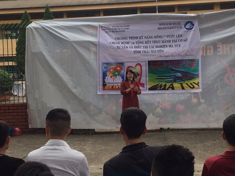 Chính vì vậy, ngày 9/11/2018, giảng viên và sinh viên ngành Công tác xã hội (CTXH), Khoa Luật và quản lý xã hội (Đại học Khoa học) đã tổ chức chương trình “Teambuilding – Vượt lên chính mình” tại Cơ sở tư vấn và điều trị cai nghiện ma túy tỉnh Thái Nguyên.