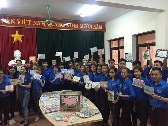 Các thí sinh ủng hộ các em nhỏ tại Trung tâm Giáo dục và hỗ trợ trẻ em bị thiệt thòi bằng việc mua thiệp do các em tự làm