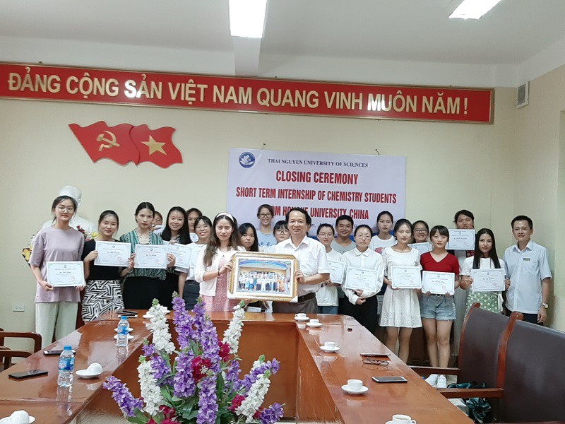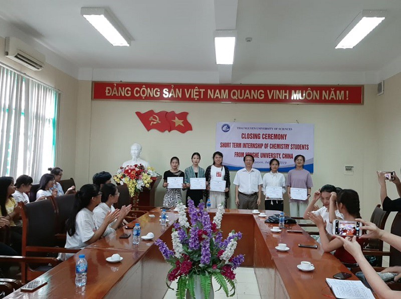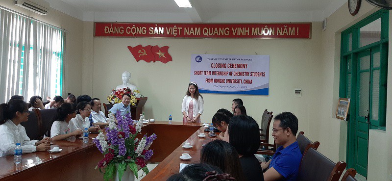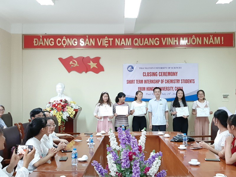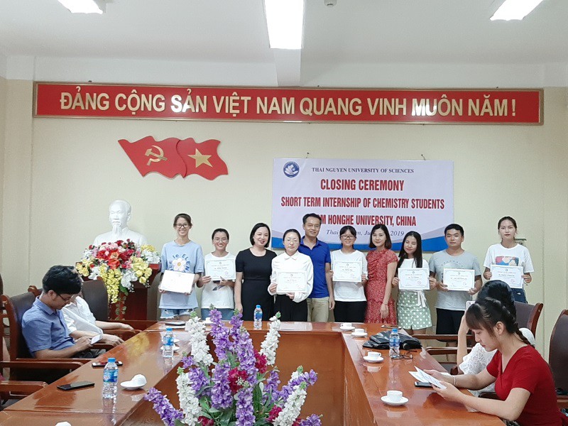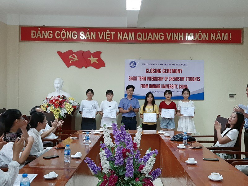 Ngày 19/7/2019, Trường Đại học Khoa học đã tổ chức lễ tổng kết và chia tay đoàn sinh viên thực tập đến từ Học viện Hồng Hà, Trung Quốc sau 2 tuần thực tập chuyên ngành Hóa phân tích (từ 9/7/2019-22/9/2019) tại Khoa Hóa học, Trường Đại học Khoa học.