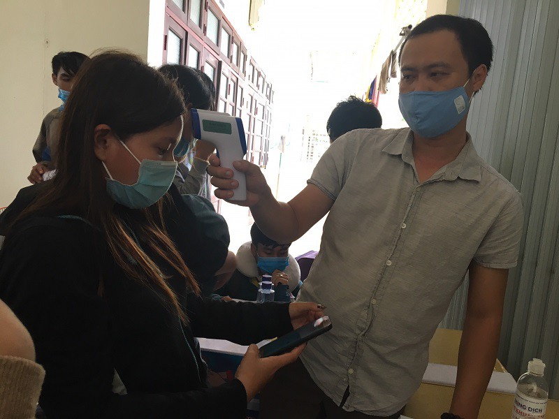 LHS Lào được cán bộ y tế của Trường Đại học Khoa học đo thân nhiệt khi trở lại Trường