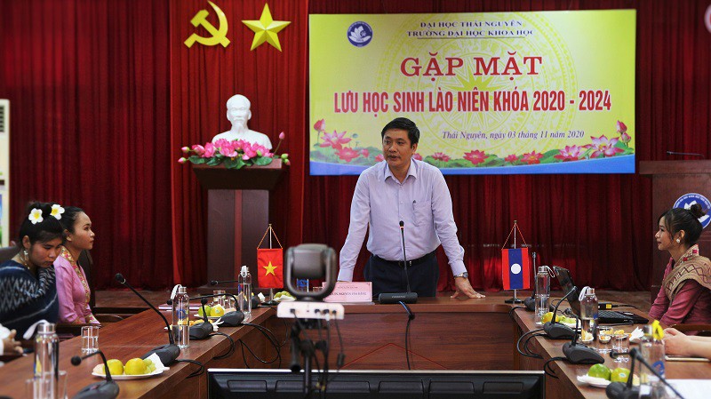 PGS.TS. Nguyễn Văn Đăng - Hiệu trưởng Trường Đại học Khoa học chào mừng các bạn tân lưu học sinh Lào niên khóa 2020 - 2024