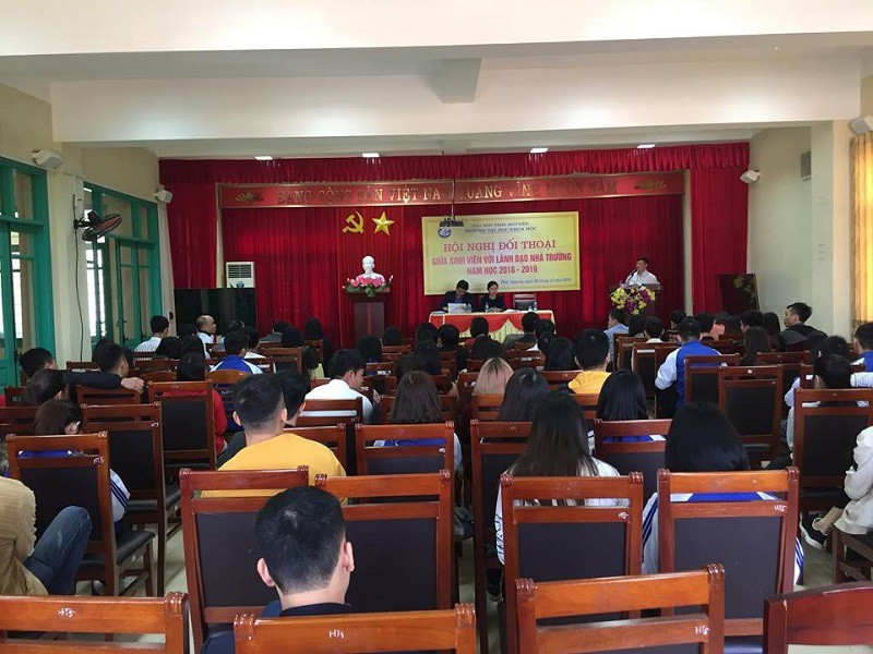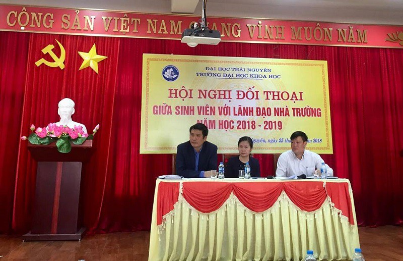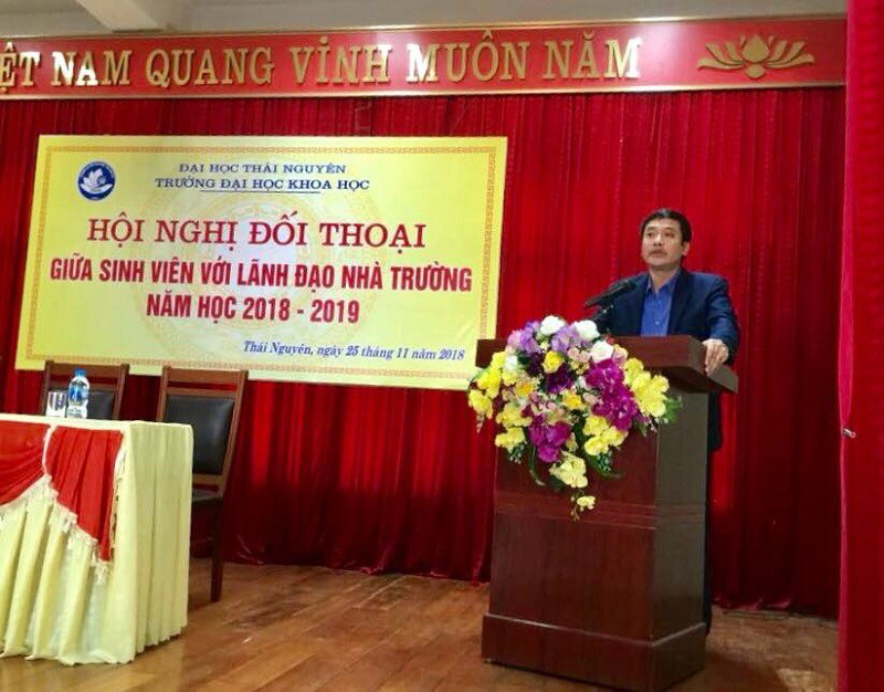 Sáng 25/11, tại tầng 5, nhà Hiệu bộ, Trường Đại học Khoa học – Đại học Thái Nguyên đã tổ chức chương trình “Đối thoại giữa sinh viên với Ban lãnh đạo nhà trường năm học 2018 – 2019”. Đây là hoạt động được tổ chức thường niên nhằm tạo ra diễn đàn trao đổi thông tin giữa Lãnh đạo nhà trường với sinh viên, giúp Lãnh đạo nhà trường nắm bắt và giải quyết kịp thời những khó khăn của sinh viên đang học tập tại trường, nâng cao chất lượng đào tạo và hoạt động của các đơn vị trong trường.