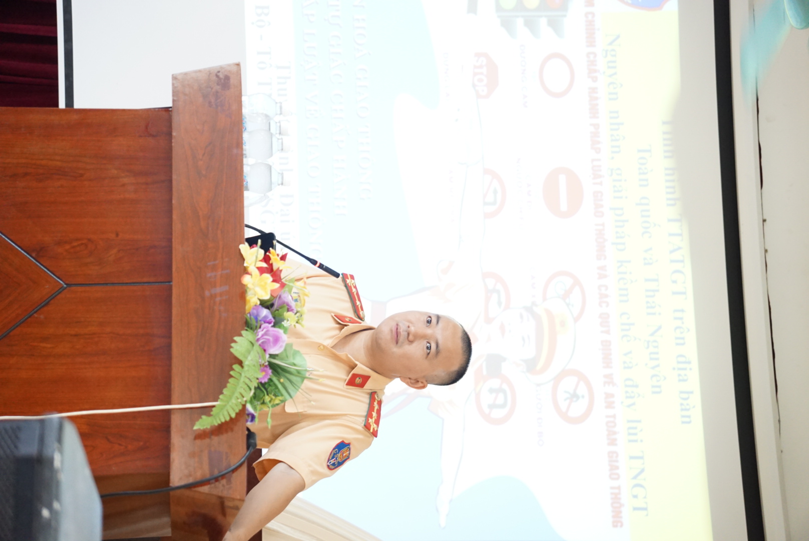 Cũng trong khuôn khổ chương trình, các sinh viên và đoàn viên thanh niên cũng đã được tuyên truyền về trật tự an toàn giao thông do báo cáo viên đến từ Phòng Cảnh sát giao thông, Công an tỉnh Thái Nguyên thực hiện. Theo đó, báo cáo viên đã hướng dẫn các bạn sinh viên các nội dung tham gia giao thông tự giác, nghiêm chỉnh thông qua các hình ảnh và tư liệu sinh động; tình hình trật tự an toàn giao thông trên địa bàn và các giải pháp nhằm giảm thiểu tai nạn, ùn tắc giao thông; tuyên truyền ý thức chấp hành các quy định về trật tự an toàn giao thông, trách nhiệm đối với bản thân và cộng đồng khi tham gia giao thông...