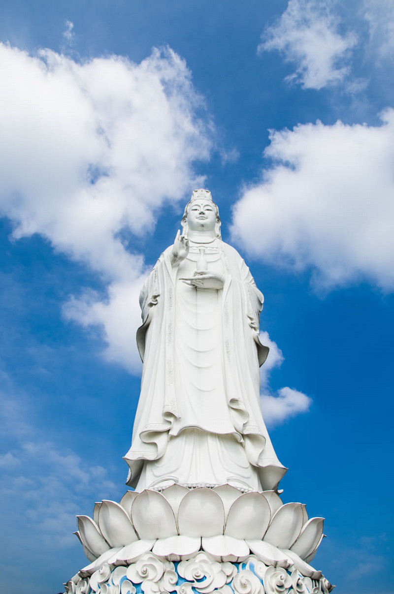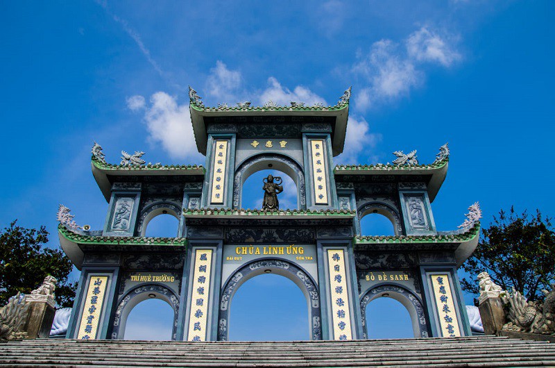 Giống như các ngôi chùa ở Trung Quốc, các biểu ngữ trên cổng Chùa Linh ứng và các khớp nối trong các ngôi đền hầu hết đều là các ký tự Trung Quốc. Đây là dấu tích phản ánh thời kì ảnh hưởng của văn hóa phương Bắc đối với Việt Nam. Nổi bật trong kiến trúc chùa Linh ứng là tượng Phật Quan Âm có đường kính 35 mét và cao 70 mét, tương đương với chiều cao của tòa nhà 20 tầng. Điều đó khiến cho tượng Phật Quan Âm Đà Nẵng trở thành bức tượng Phật cao nhất Việt Nam.