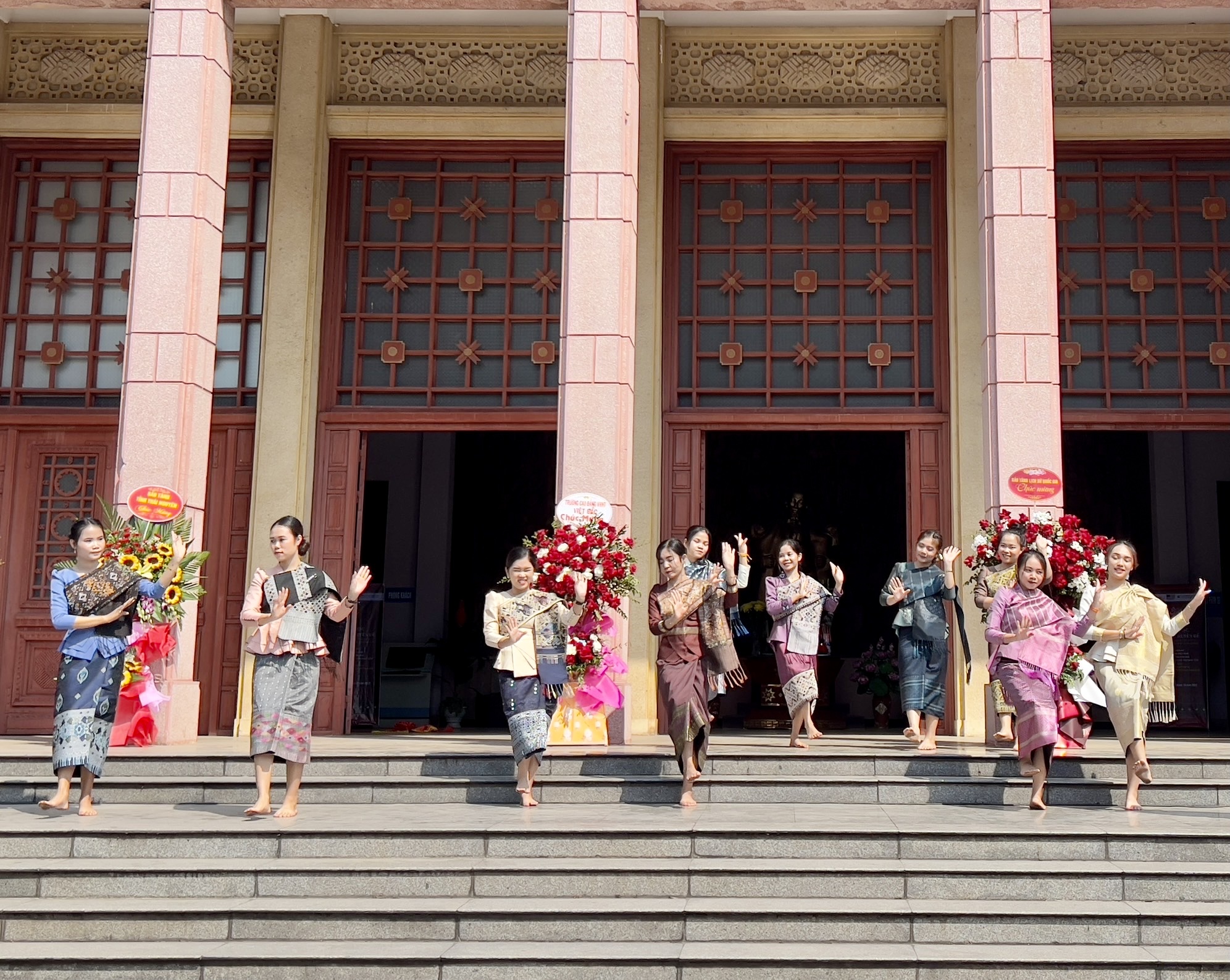 Ảnh 4: Yim tham gia chương trình văn nghệ với điệu múa truyền thống của người Lào