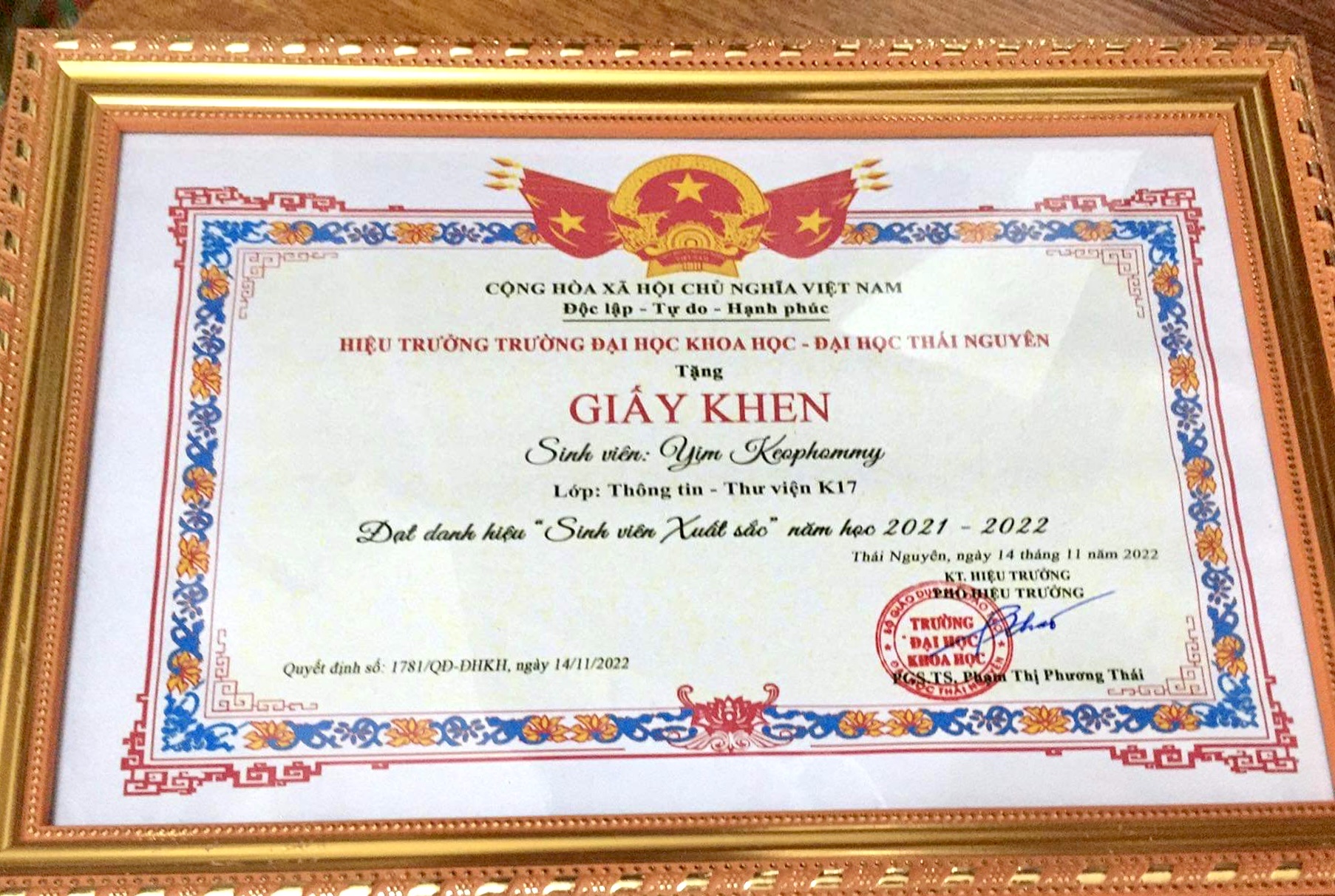 Ảnh 5: Yim là sinh viên Xuất sắc năm học 2021 - 2022