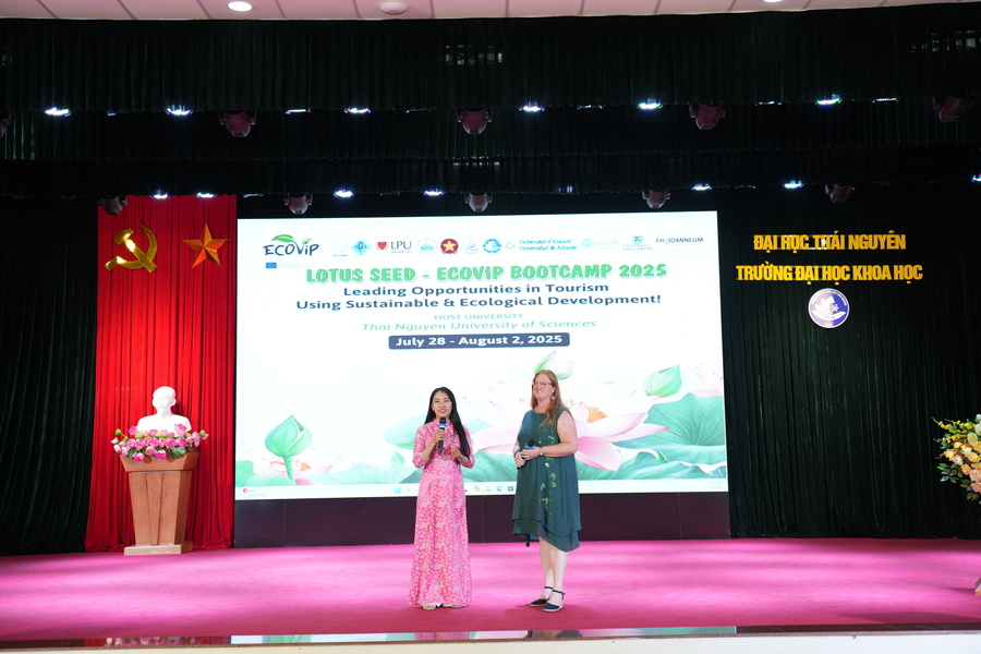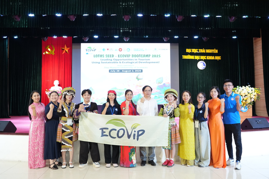 Trại hè Khởi nghiệp Du lịch Sinh thái LOTUS SEED – ECOViP Bootcamp 2025 - một trong những nội dung quan trọng của Dự án quốc tế ECOVIP, diễn ra tại TNUS từ ngày 28/07 đến ngày 02/08/2025. Trong khuôn khổ Trại hè, các đội thi được tham gia vào các lớp tập huấn, đào tạo về truyền thông, marketing trong du lịch sinh thái; ứng dụng tư duy thiết kế vào thực tiễn nhằm nâng cao trải nghiệm du lịch; đồng thời tích hợp các mục tiêu phát triển bền vững vào mô hình kinh doanh; phân tích tính bền vững của các điểm du lịch cộng đồng… từ đó, đưa ra các giải pháp chiến lược trong phát triển du lịch tại địa bàn tỉnh Thái Nguyên nói riêng cũng như trên phạm vi toàn quốc. Những kiến thức, trải nghiệm thực tế tại Trại hè là hành trang quý báu giúp các bạn sinh viên có thêm tự tin hơn khi bước vào phần thi thuyết trình dự án.