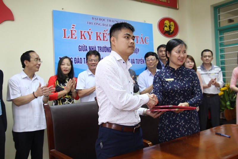 Kết thúc buổi lễ, Trường ĐHKH đã ký biên bản ghi nhớ hợp tác toàn diện trong đào tạo nhân lực ngành du lịch với Hiệp hội Du lịch tỉnh Thái Nguyên, các doanh nghiệp hoạt động trong lĩnh vực du lịch – lữ hành tại tỉnh Thái Nguyên. Đây là cơ hội tốt cho các bạn sinh viên đang học và các bạn học sinh sắp đăng ký vào học các ngành cử nhân Du lịch, cử nhân Quản trị dịch vụ du lịch và lữ hành, Cử nhân Ngôn ngữ Anh (Chuyên ngành: tiếng Anh du lịch) của nhà trường sẽ có môi trường học tập tốt, cơ hội thực hành, thực tập và cơ hội việc làm phù hợp với ngành nghề đào tạo sau khi ra trường. Việc ký kết hợp tác đào tạo với Hiệp hội và các doanh nghiệp là minh chứng rõ nét cho sự thay đổi mô hình đào tạo của Trường ĐHKH nhằm đào tạo nguồn nhân lực chất lượng cao, đáp ứng yêu cầu của xã hội.