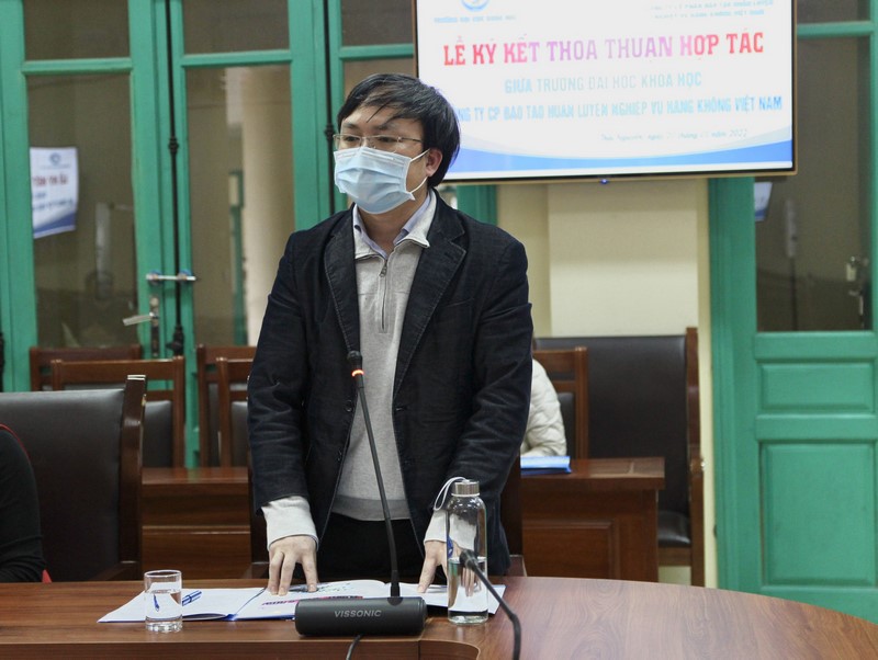 Đại diện cho Công ty cổ phần đào tạo, huấn luyện nghiệp vụ hàng không Việt Nam ông Nguyễn Hải Phong – Chủ tịch HĐQT, Tổng Giám đốc công ty đã phát biểu chào mừng và giới thiệu về VNAS. Ông Nguyễn Hải Phong chia sẻ về việc mong muốn phối hợp với Nhà trường trong các chương trình tọa đàm giới thiệu về cơ hội thực tập ngành Hàng không cho sinh viên TNUS. Bên cạnh đó, cũng nhấn mạnh về việc liên kết mở các lớp đào tạo, nâng cao trình độ tiếng Anh phục vụ cho ngành hàng không; mở các khóa đào tạo kỹ năng mềm khác. Hằng năm, phía Công ty VNAS sẽ cử các chuyên gia nói chuyện, chia sẻ với các em sinh viên về kỹ năng phỏng vấn, kỹ năng giao tiếp… giúp các em tự tin và có kinh nghiệm khi đi xin việc làm.