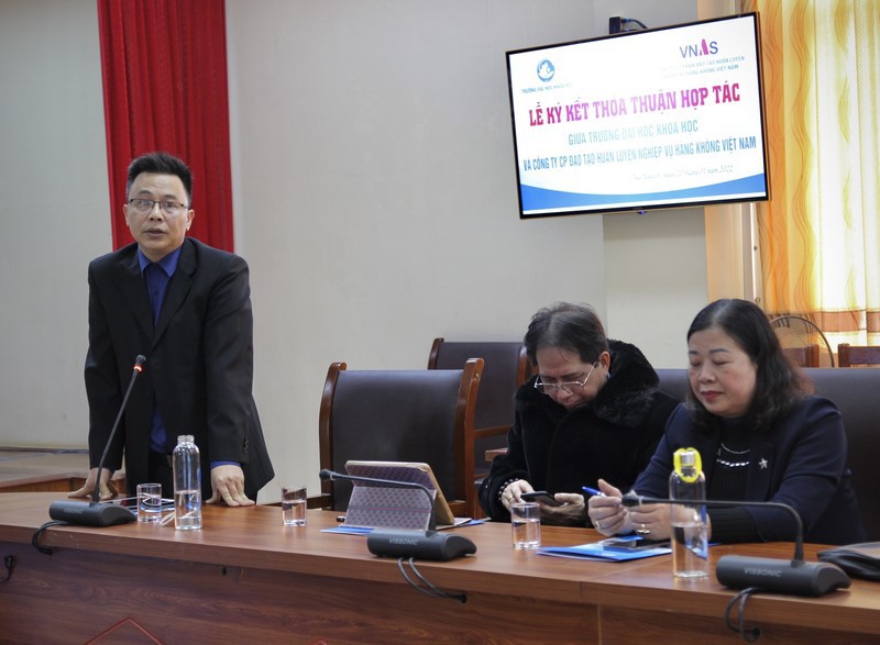 Nhằm mục tiêu phát huy tiềm năng, sức mạnh của hai đơn vị, góp phần nâng cao hiệu quả công tác đào tạo, phát triển nguồn nhân lực chất lượng cao phục vụ cho ngành Hàng không nói riêng và phát triển kinh tế - xã hội của đất nước nói chung, chiều ngày 20/1, Trường Đại học Khoa học và Công ty Cổ phần đào tạo, huấn luyện nghiệp vụ hàng không Việt Nam (VNAS) đã thảo luận và đi đến thống nhất ký kết Thỏa thuận hợp tác.