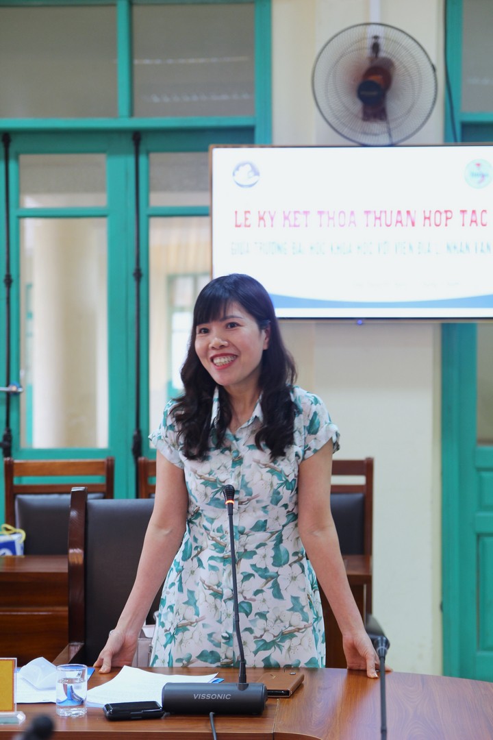 Trong khuôn khổ chương trình, TS. Đoàn Thị Thu Hương, Phó Trưởng phòng QLKH, đại diện của Viện Địa lí nhân văn đã trình bày dự thảo MOU với nội dung cụ thể như sau: