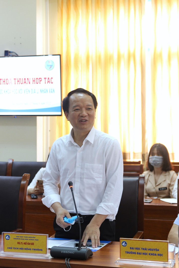 Thay mặt cho Viện Địa lí nhân văn, TS. Nguyễn Song Tùng đã bày tỏ lời cảm ơn sự đón tiếp nồng hậu, những tình cảm quý báu từ phía Nhà trường và mong muốn qua Lễ ký kết MOU sẽ tiếp tục củng cố mối quan hệ tốt đẹp giữa hai bên.