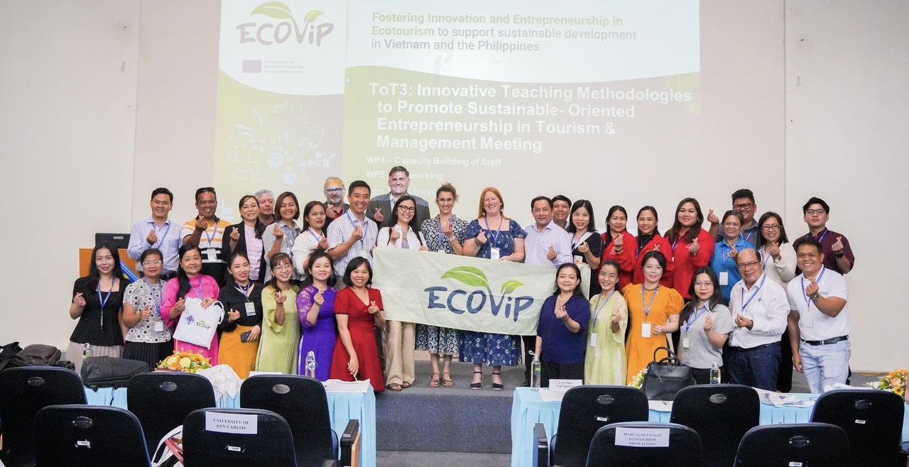 Trong khuôn khổ dự án quốc tế ECOViP “Thúc đẩy đổi mới sáng tạo và khởi nghiệp trong lĩnh vực du lịch sinh thái để hỗ trợ phát triển bền vững tại Việt Nam và Philippines” (ECOVIP) do Liên mình châu Âu tài trợ, từ ngày 08/04/2024 - 12/04/2024, khoá tập huấn đào tạo thuộc nhiệm vụ ToT2 với chủ đề “Phương pháp giảng dạy đổi mới để thúc đẩy khởi nghiệp định hướng bền vững trong du lịch” (Innovative teaching methodologies to promote sustainable - oriented entrepreneurship in tourism” đã được thực hiện tại Đại học Cần Thơ (CTU).