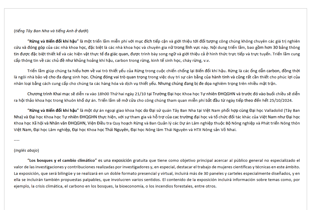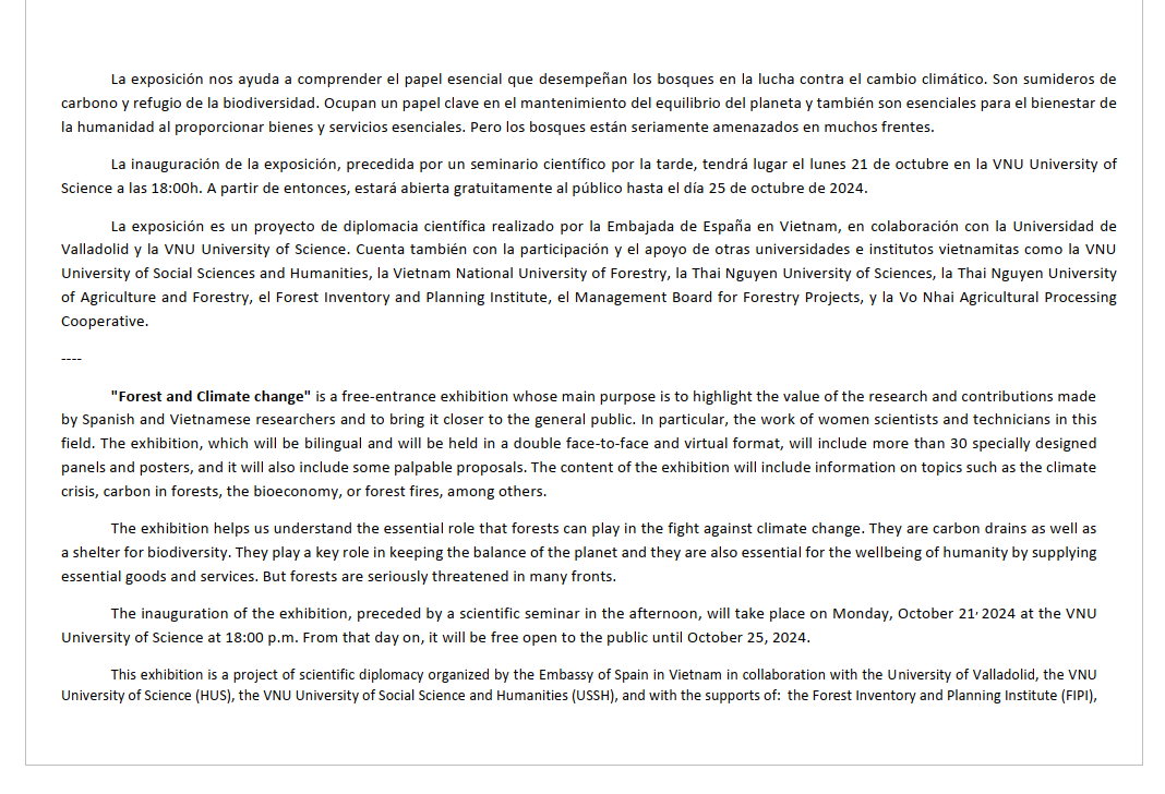 Triển lãm Rừng và Biến đổi khí hậu là sự kiện là dự án ngoại giao khoa học do Đại sứ quán Tây Ban Nha tại Việt Nam, Đại học Valladolid, TBN phối hợp với một số trường đại học Việt Nam tổ chức, trong đó có Trường Đại học Khoa học - Đại học Thái Nguyên.