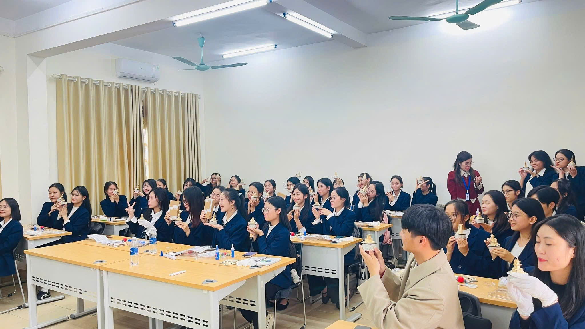 Đặc biệt, dưới sự hướng dẫn trực tiếp của ông Kwon Cheol Ho, sinh viên được trải nghiệm thực hành mô hình kiến trúc thời Tân La (Silla) – giai đoạn vàng son của văn hóa Hàn Quốc, với ba công trình tiêu biểu: Tháp Đa Bảo (다보탑), Tháp Thích Ca (석가탑) và Đài Thiên Văn (첨성대). Hoạt động trải nghiệm này đã khơi gợi sự hứng thú học tập và giúp sinh viên hiểu sâu hơn về mối liên hệ giữa văn học, kiến trúc và tư tưởng thẩm mỹ của Hàn Quốc cổ đại.