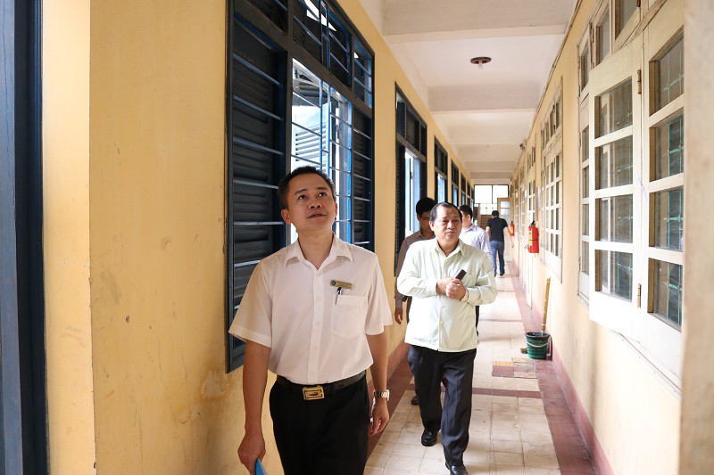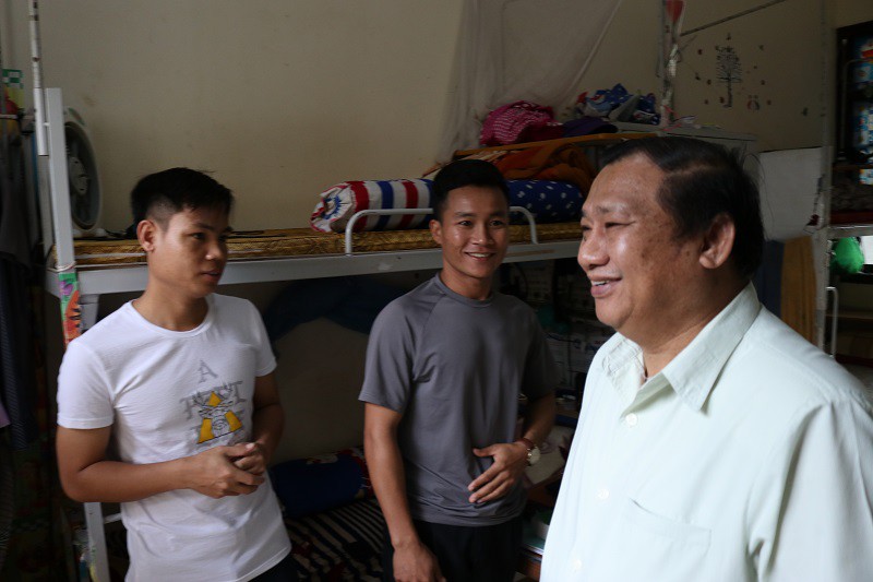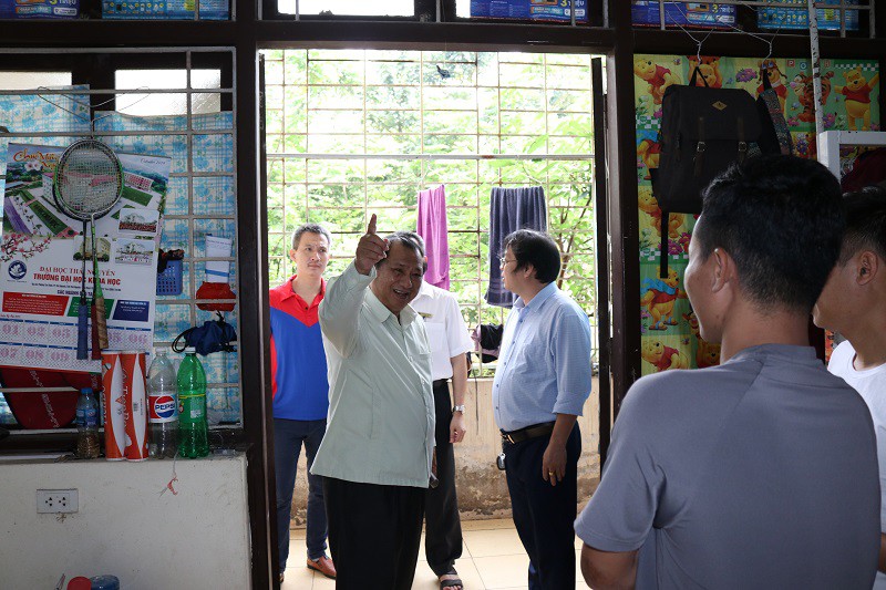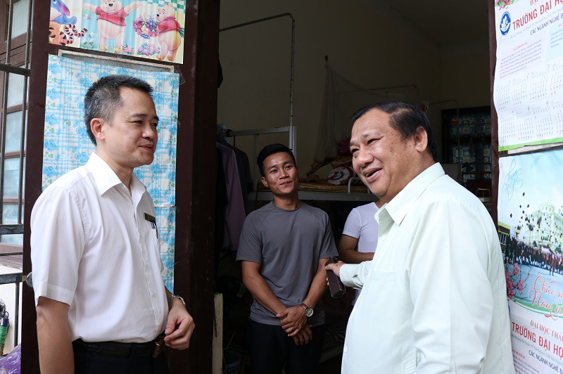 TS Uothay Bannavong cùng ban lãnh đạo nhà trường tham quan ktx