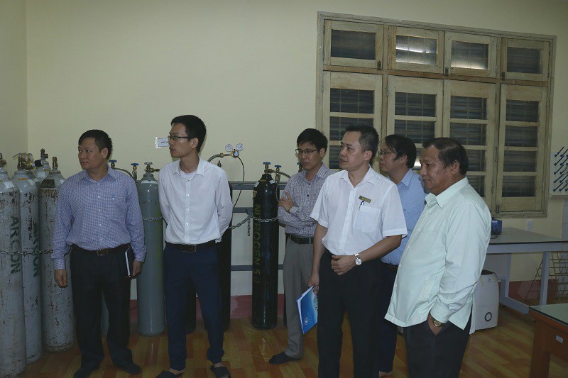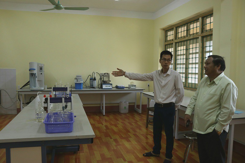 TS Uothay Bannavong cùng ban lãnh đạo nhà trường tham quan phòng thí nghiệm