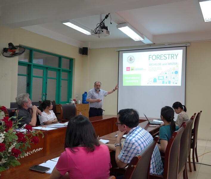 GS. Felipe Bravo (Đại học Valladolid, Tây Ban Nha) là người đã kết nối giữa Trường Đại học Khoa học - Đai học Thái Nguyên và Đại học Valladolid trong Chương trình Erasmus+ từ năm 2018 đến nay. Với vai trò là giảng viên trao đổi trong khuôn khổ Chương trình Erasmus+ Mobility năm học 2023-2024, Giáo sư đã có các buổi trao đổi chuyên môn với giảng viên và sinh viên Khoa Tài Nguyên và Môi trường. Đồng thời, GS. Felipe Bravo cũng chia sẻ kinh nghiệm và các cơ hội hợp tác trong đào tạo, nghiên cứu giữa hai đơn vị.