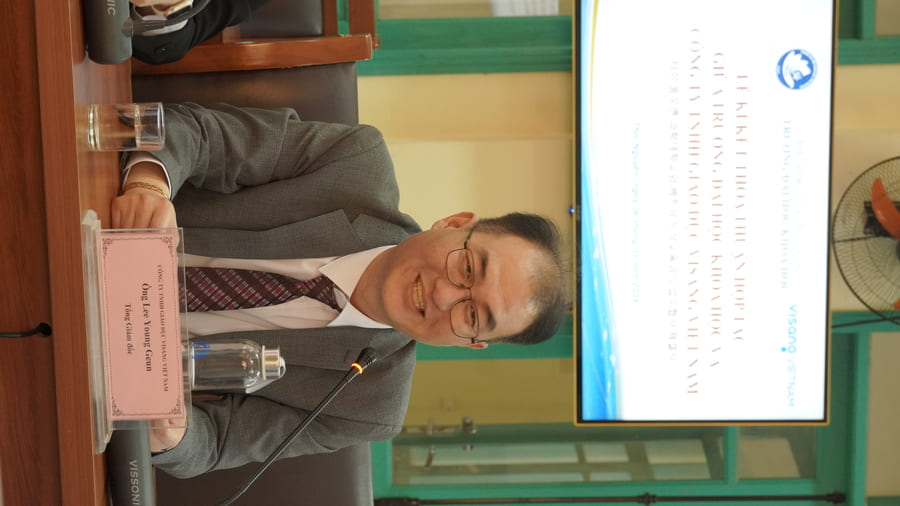 Ông Lee Young Guen – Tổng Giám đốc công ty TNHH Visang Việt Nam phát biểu và bày tỏ sự vui mừng khi có mặt tại buổi lễ