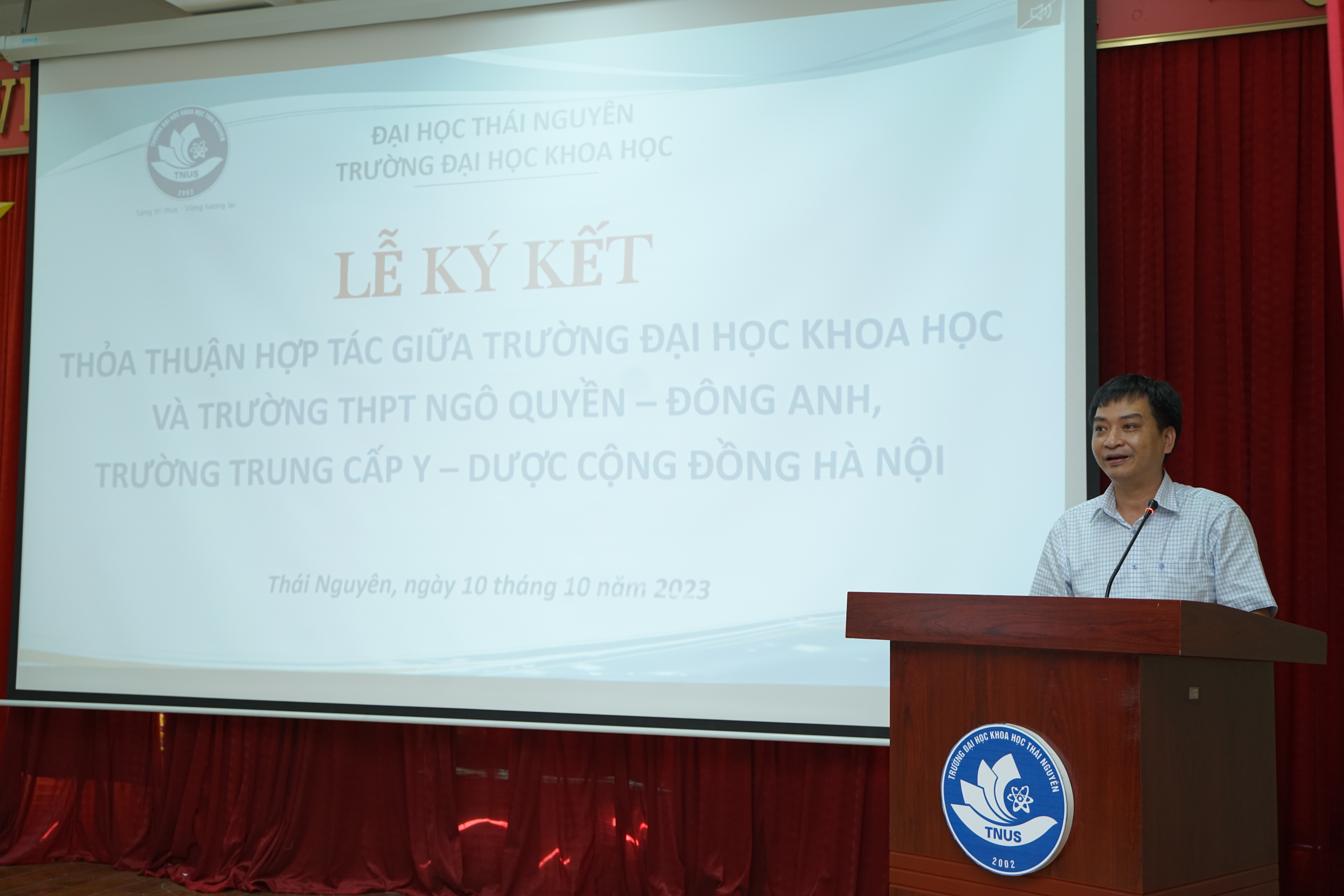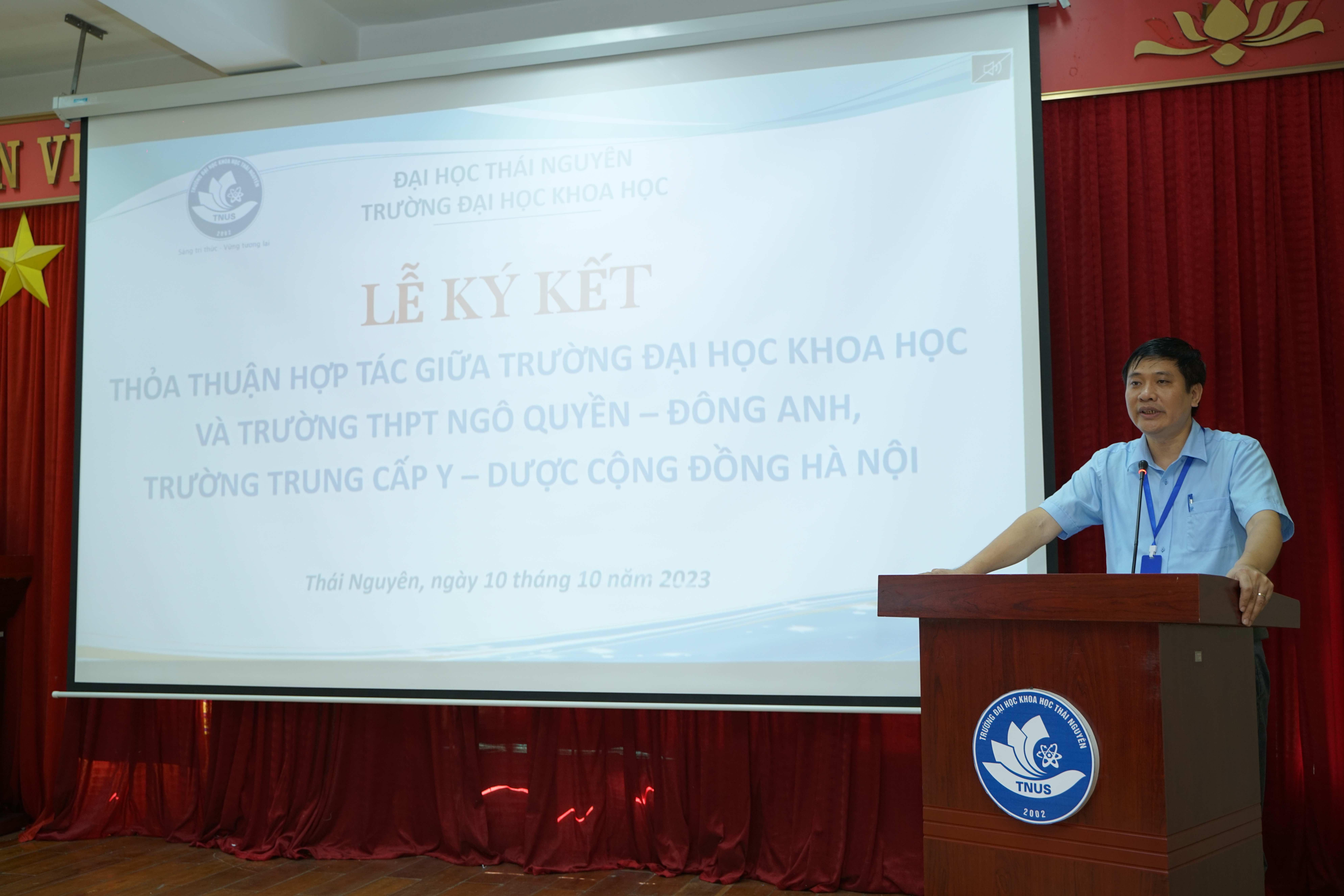 Thực hiện Chiến lược phát triển phát triển Trường ĐHKH giai đoạn 2020 – 2025, tầm nhìn 2030; kế hoạch năm học 2023 - 2024 của Trường Đại học Khoa học; Căn cứ Kế hoạch số 1280 ngày 09/10/2023 của Trường ĐHKH v/v đề xuất ký kết hợp tác với Trường THPT Ngô Quyền, Đông Anh, Trường Trung cấp Y-Dược cộng đồng Hà Nội; Căn cứ vào khả năng và nhu cầu hợp tác của Trường ĐHKH và Trường THPT Ngô Quyền, Đông Anh, Trường Trung cấp Y-Dược cộng đồng Hà Nội. Với mục đích kết nối, mở rộng một cách có hiệu quả các mối quan hệ trong nước nhằm đưa hoạt động đào tạo, NCKH, hướng nghiệp và việc làm cho sinh viên, Trường ĐHKH và Trường THPT Ngô Quyền, Đông Anh, Trường Trung cấp Y-Dược cộng đồng Hà Nội đồng tổ chức lễ ký kết hợp tác trong đào tạo và cung cấp nhân lực.