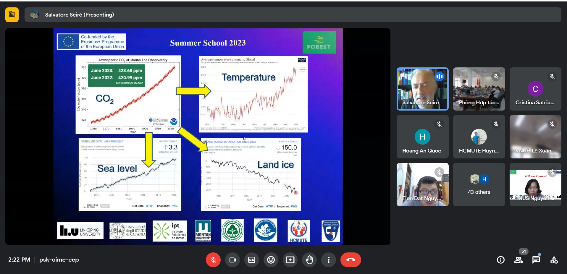 Mở đầu chương trình là thông điệp chào mừng của Giáo sư Janerik Lundquist, điều phối viên dự án Erasmus + FOREST, giáo sư trường Đại học Linkoping, Thụy Điển và giáo sư cũng đã nêu về nội quy khóa học.