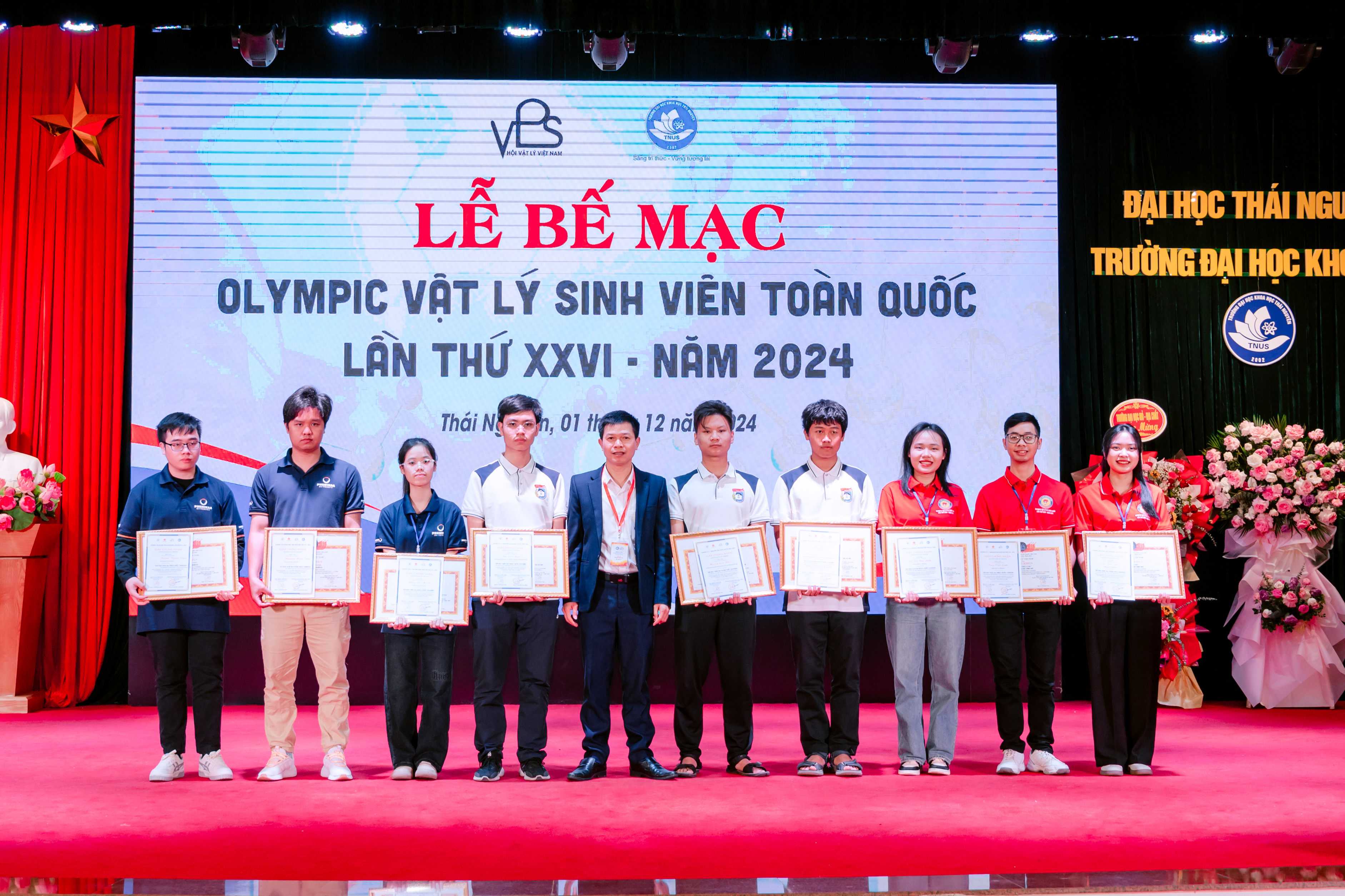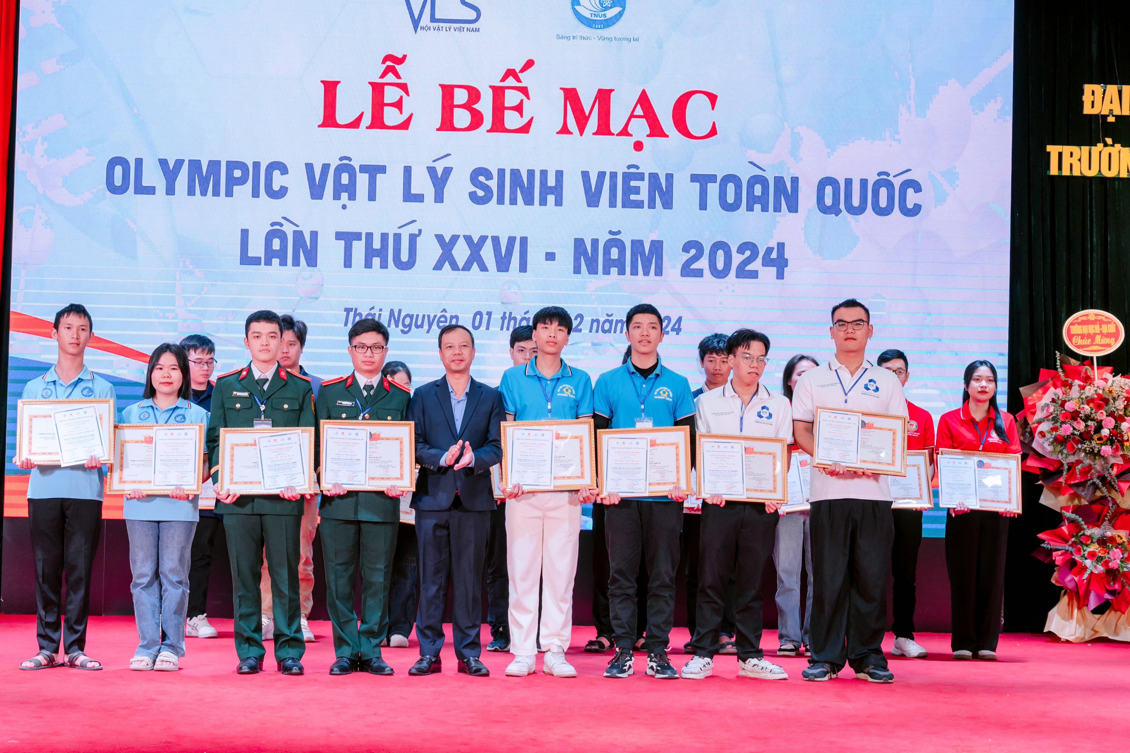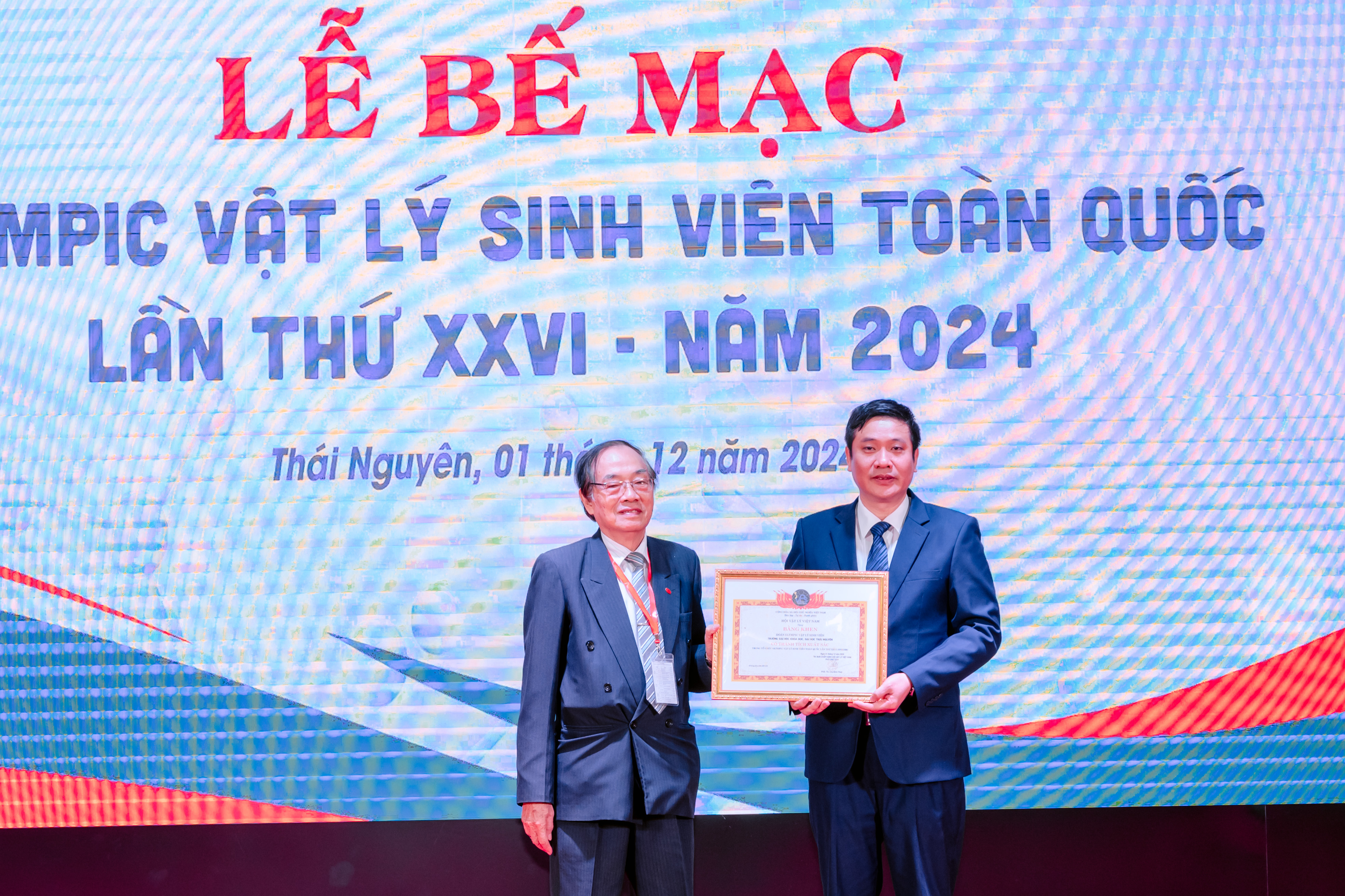 Sau 3 ngày tranh tài sôi nổi và quyết liệt, Kì thi Olympic Vật lý Sinh viên toàn quốc lần thứ XXVI năm 2024 đã khép lại, khẳng định đây là sân chơi trí tuệ góp phần thúc đẩy, nâng cao chất lượng dạy và học môn Vật lý, đồng thời là cơ hội để các giảng viên và sinh viên của các trường gặp gỡ, giao lưu, trao đổi kinh nghiệm học thuật trong lĩnh vực Vật lý.