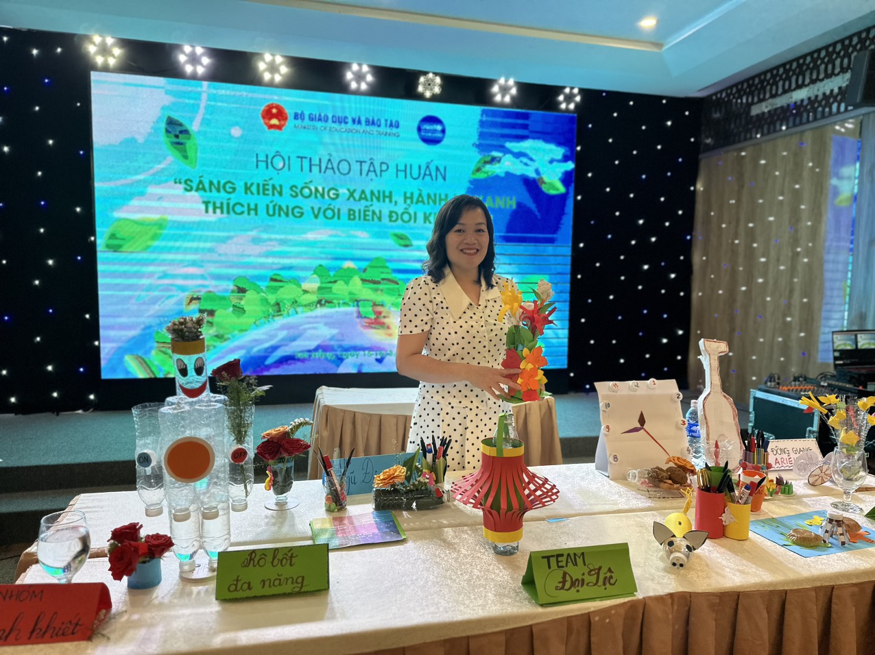 Tại hội thảo tập huấn, cán bộ quản lý và giáo viên đã được nghe trình bày, chia sẻ kinh nghiệm và thảo luận các nội dung như: Trường học xanh, trường học giảm thiểu rác thải nhựa; Nhân rộng, chia sẻ những sáng kiến sống xanh, hành vi xanh, giảm thiểu rác thải nhựa, công trình măng non gây quỹ cho học sinh nghèo vượt khó từ rác thải; Tạo dựng thói quen giữ gìn vệ sinh, phân loại rác, … từ học đường cho học sinh tiểu học và THCS, thay đổi từ nhận thức, thói quen đến hành động bảo vệ môi trường. Đồng thời, dưới sự hướng dẫn của cán bộ tập huấn các thầy cô giáo trực tiếp xây dựng các chương trình, kế hoạch truyền thông bảo về môi trường qua sáng tạo bài dạy, hoạt động ngoại khóa, các sản phẩm tái chế,….