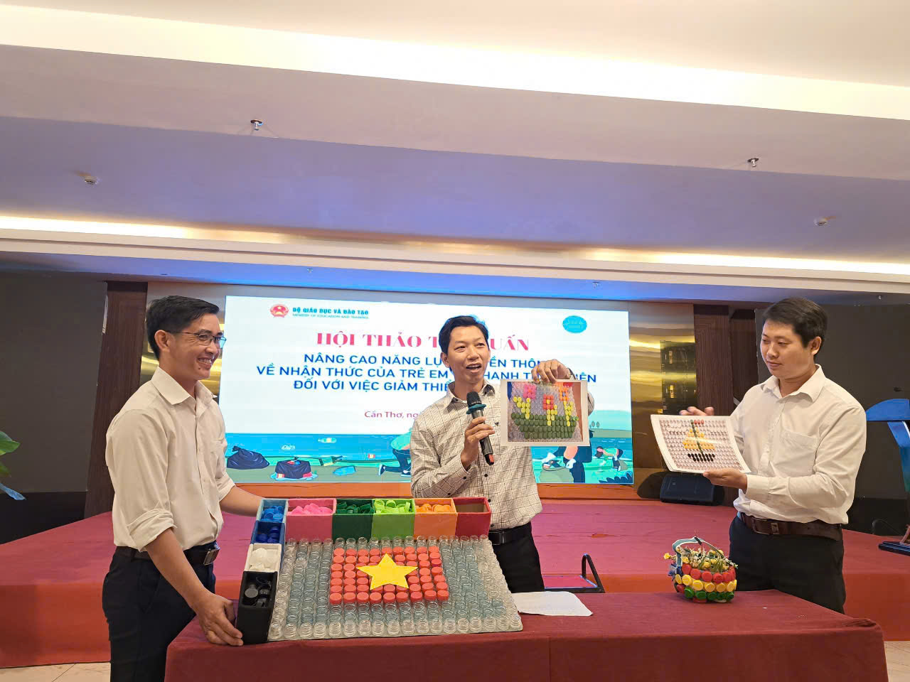Ngày 22-23/8/2024, Vụ Khoa học, Công nghệ và Môi trường (Bộ GD&ĐT) tổ chức Hội thảo tập huấn “Nâng cao năng lực truyền thông về nhận thức của trẻ em và thanh thiếu niên đối với việc giảm thiểu rác thải nhựa” tại thành phố Cần Thơ. Trong hội thảo tập huấn, ThS. Nguyễn Thu Huyền đã giới thiệu cuốn Sổ tay truyền thông giảm thiểu rác thải nhựa cho học sinh cấp tiểu học, THCS và tập huấn tài liệu hướng dẫn sổ tay cho 110 cán bộ quản lý và giáo viên ở tỉnh Sóc Trăng, tỉnh Đồng Tháp, thành phố Cần Thơ.
