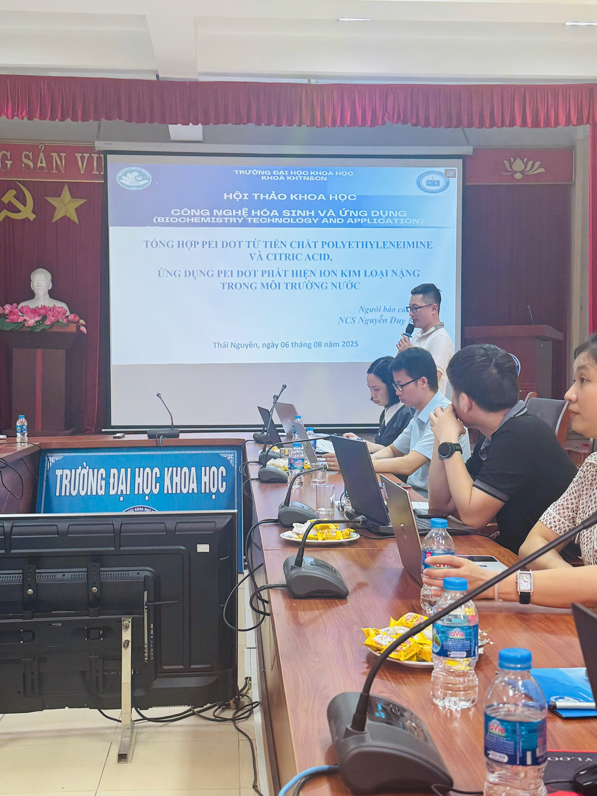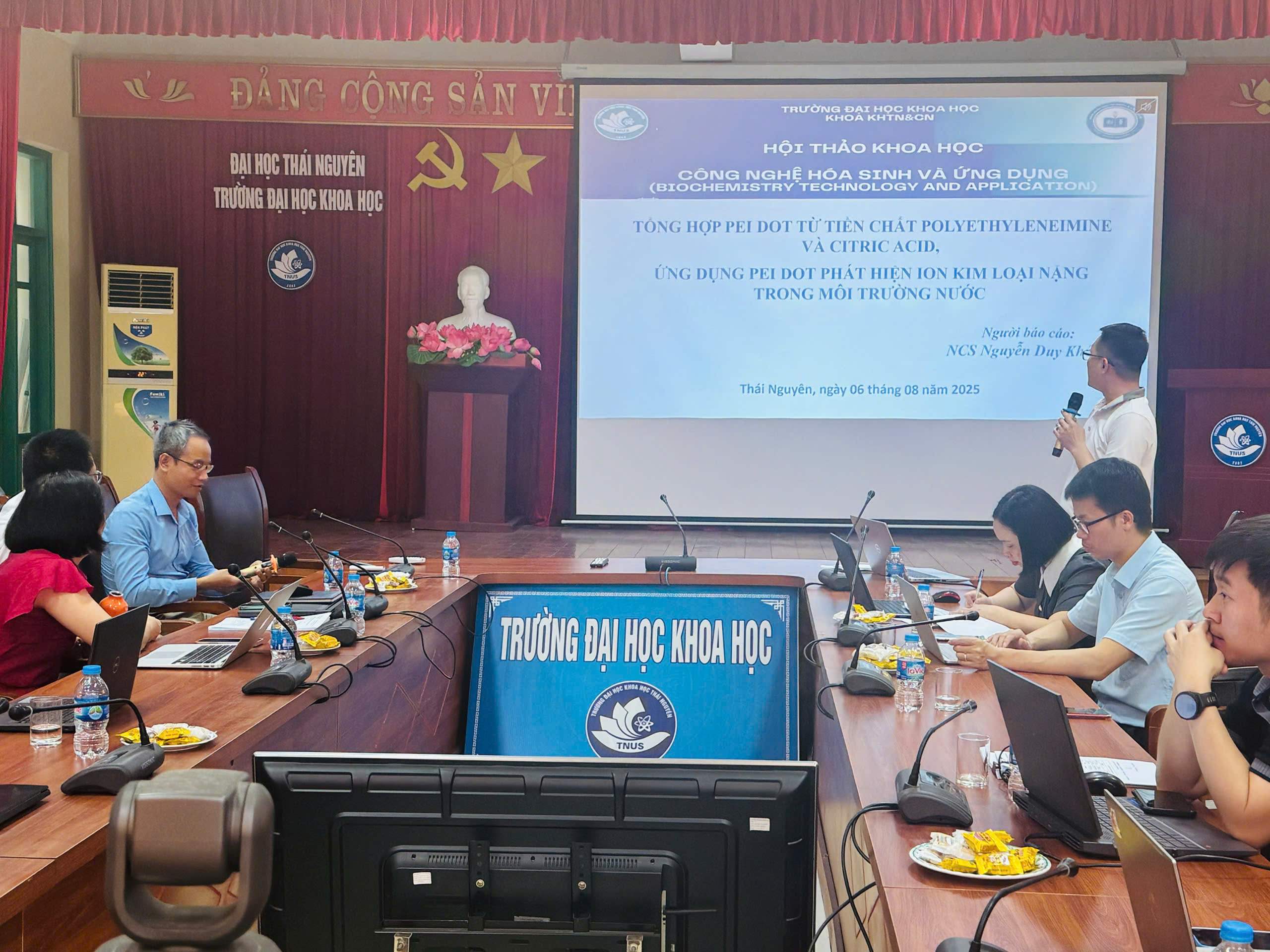Vừa qua, Khoa Khoa học Tự nhiên và Công nghệ - Trường Đại học Khoa học đã tổ chức thành công Hội thảo Khoa học với chủ đề "Công nghệ Hóa sinh và Ứng dụng". Đây là hội thảo liên ngành Hóa – Sinh đầu tiên giữa các nhà khoa học Hóa học và Sinh học. Tại đây các nhà khoa học, giảng viên, nghiên cứu sinh và sinh viên đã trình bày, trao đổi học thuật về các kết quả nghiên cứu trong lĩnh vực công nghệ Hóa học và Sinh học.