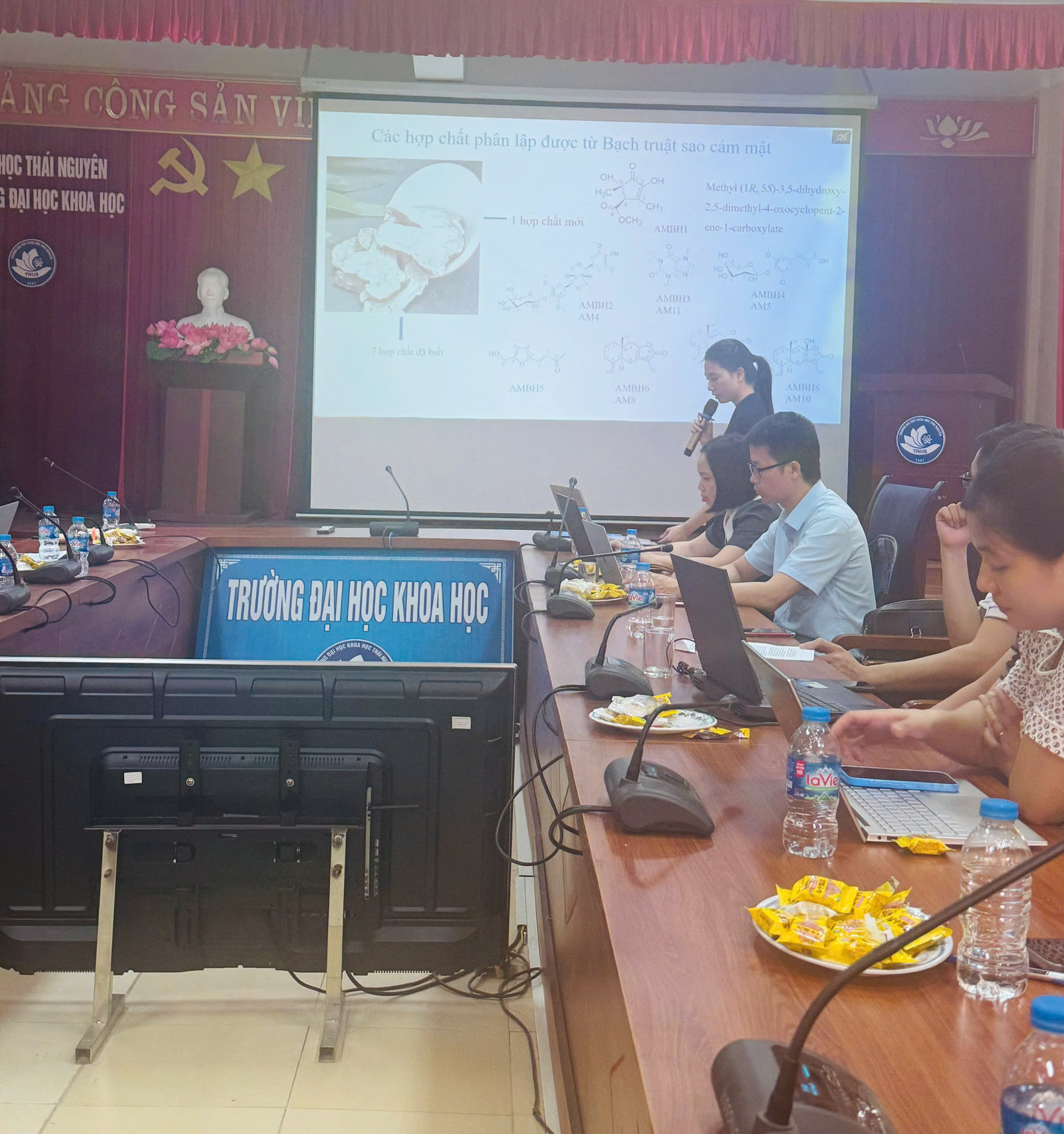 TS. Cao Thanh Hải khép lại chuỗi báo cáo với nghiên cứu “Định lượng thành phần hóa học của các mẫu Bạch truật (Atractylodes macrocephala Koidz.), thuộc họ Cúc (Asteraceae) chế biến theo các phương pháp y học cổ truyền”. Nghiên cứu góp phần chuẩn hóa và hiện đại hóa các vị thuốc cổ truyền thông qua các phương pháp phân tích hiện đại.