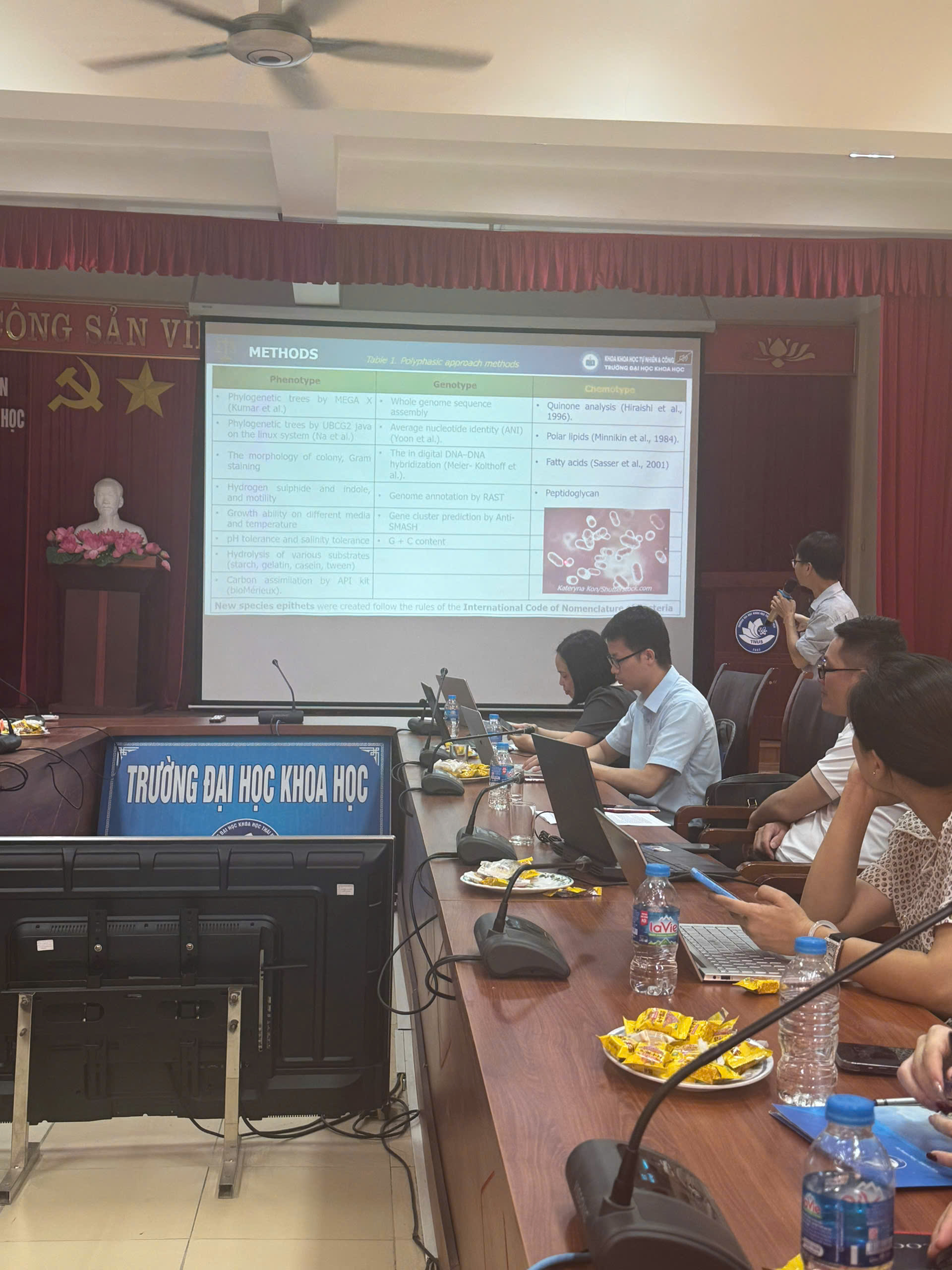 TS. Trưởng A Tài (Trưởng bộ môn Công nghệ Sinh học) mở đầu chương trình với báo cáo “Phát triển các phương pháp phân tử ứng dụng trong chẩn đoán và điều trị bệnh truyền nhiễm trên động vật và người”. Báo cáo nhấn mạnh tiềm năng của các công nghệ sinh học phân tử như PCR, LAMP, CRISPR trong việc phát hiện và điều trị sớm các bệnh truyền nhiễm nguy hiểm.