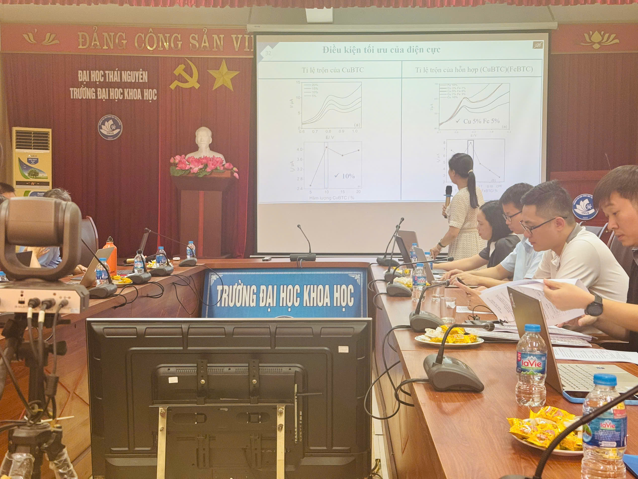TS. Nguyễn Thị Kim Ngân trình bày nghiên cứu “Phân tích kháng sinh Enrofloxacin trong nước mặt bằng vật liệu khung hữu cơ kim loại CuBTC và FeBTC”. Báo cáo làm nổi bật ứng dụng của MOFs (Metal-Organic Frameworks) trong việc phát hiện các chất ô nhiễm ở nồng độ thấp trong môi trường nước.