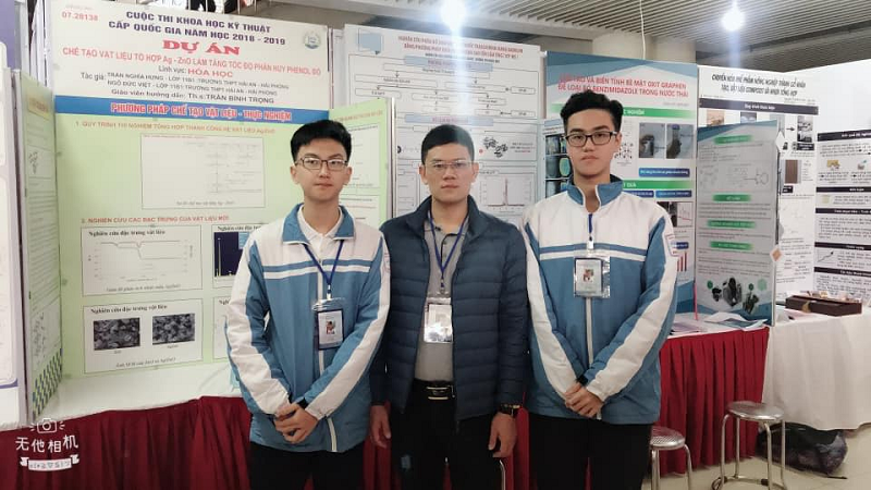 Dự án Chế tạo vật liệu tổ hợp Ag-ZnO làm tăng tốc độ phân hủy phenol đỏ của các tác giả Trần Nghĩa Hưng, Ngô Đức Việt - lớp 11B1 Trường THPT Hải An, Hải Phòng. Dự án được thực hiện dưới sự hướng dẫn của thầy giáo - ThS. Trần Bình Trọng - nguyên học viên cao học K10 Khoa Hóa Trường ĐH Khoa học. Sau khi hoàn thành chương trình đào tạo sau đại học tại Khoa Hóa học Trường Đại học Khoa học, với niềm đam mê giảng dạy và nghiên cứu khoa học, đặc biệt là nhờ sự cố vấn khoa học nhiệt tình của TS. Trương Thị Thảo – Giảng viên Khoa Hóa học Trường Đại học Khoa học, ThS Trần Bình Trọng đã hướng dẫn thành công nhóm học sinh thực hiện đề tài nghiên cứu trên.
