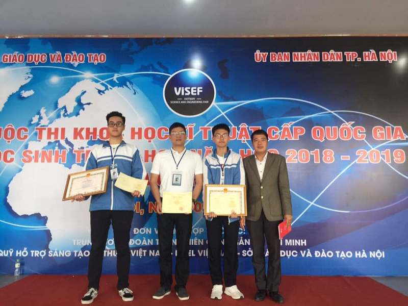 Trần Bình Trọng và nhóm dự án đạt giải trong cuộc thi Khoa học kĩ thuật cấp quốc gia, năm học 2018 – 2019