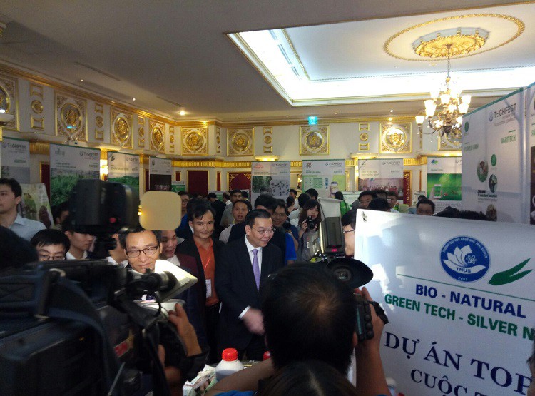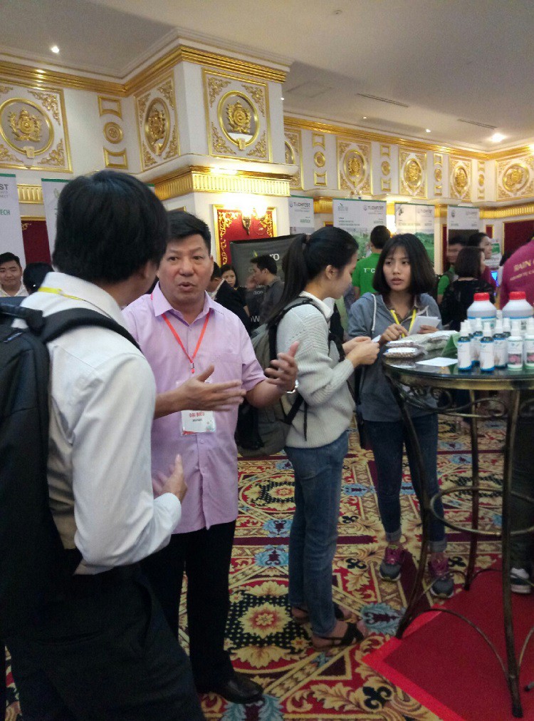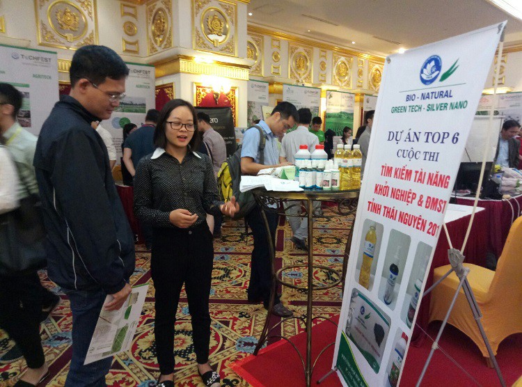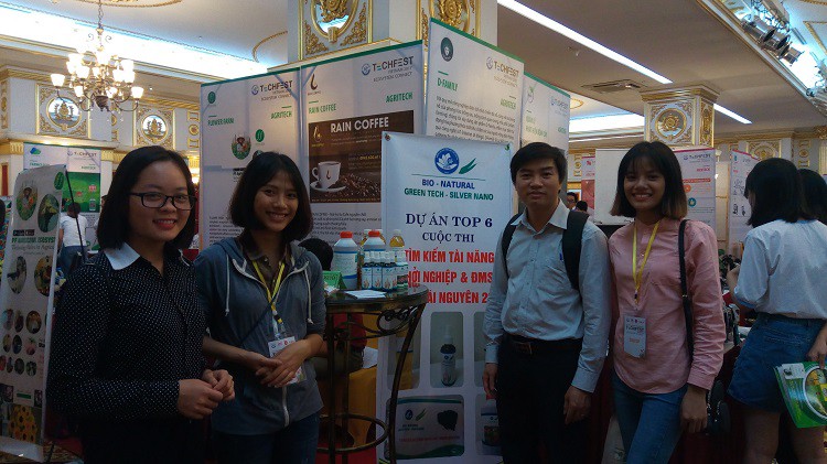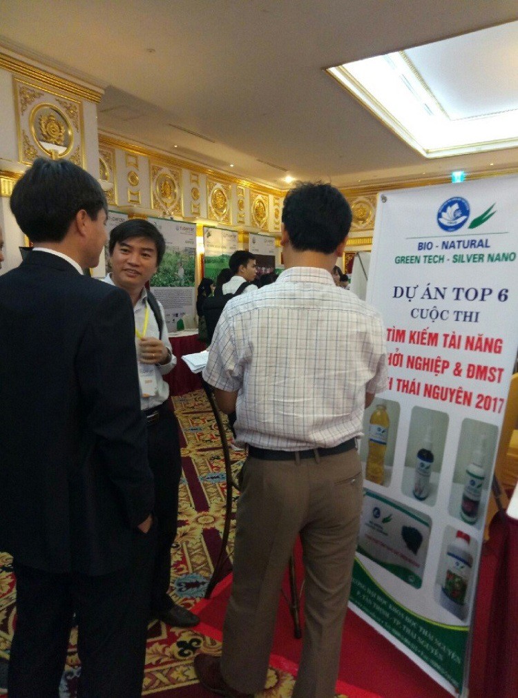 Dự án: Sản xuất chế phẩm nano bạc bằng công nghệ xanh của nhóm nghiên cứu khoa Công nghệ sinh học – Trường Đại học Khoa học do TS. Trịnh Đình Khá chủ trì đã tham gia trưng bày và giới thiệu sản phẩm tại làng Công nghệ nông nghiệp (AGRITECH). Tại triển lãm, các thành viên nhóm nghiên cứu đã trao đổi với các nhà đầu tư, quan khách quan tâm xung quanh những vấn đề công nghệ sản xuất nano bạc bằng phương pháp sinh học thân thiện với môi trường, không tồn dư các hóa chất độc hại và các sản phẩm của dự án. Đây là một hoạt động trải nghiệm thú vị, tạo động lực cho thầy trò Khoa Công nghệ sinh học tiếp tục học tập, nghiên cứu, khởi nghiệp đổi mới sáng tạo. Hẹn gặp lại Ngày hội khởi nghiệp đổi mới sáng tạo Quốc gia năm 2018.