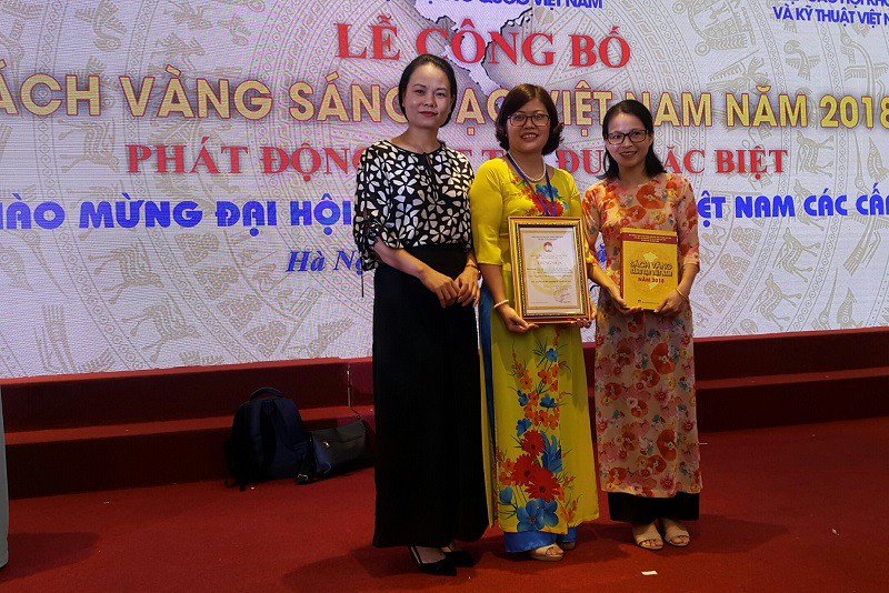 Đại diện nhóm tác giả nhận Giấy chứng nhận và Sách vàng Sáng tạo Việt Nam 2018