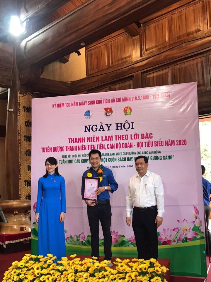 TS. Mai Viết Thuận (giữa) nhận danh hiệu Thanh niên Tiên tiến làm theo lời Bác cấp tỉnh năm 2020.