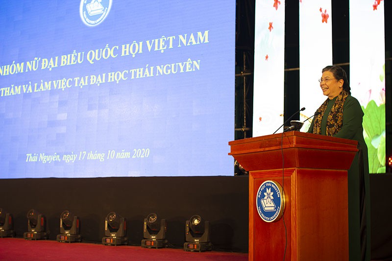 Phát biểu tại buổi làm việc, đồng chí Tòng Thị Phóng, Ủy viên Bộ Chính trị, Phó Chủ tịch Thường trực Quốc hội đã ghi nhận, biểu dương và chúc mừng những kết quả, thành tựu mà Đại học Thái Nguyên đạt được trong những năm qua, đồng thời đánh giá cao những đóng góp của Đại học Thái Nguyên vào sự phát triển của ngành giáo dục cũng như của địa phương, khu vực, thể hiện đúng vị thế vai trò của một trung tâm giáo dục lớn của cả nước.