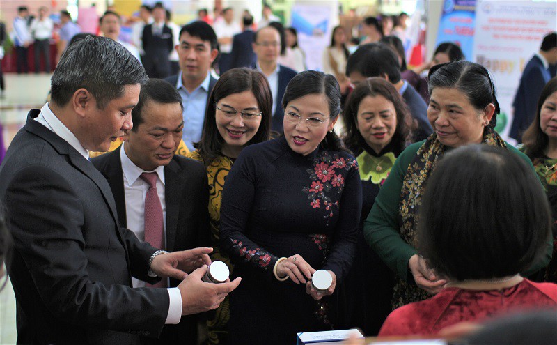 Phó Chủ tịch thường trực Quốc hội Tòng Thị Phóng thăm không gian trưng bày các sản phẩm khoa học công nghệ của Trường Đại học Khoa học
