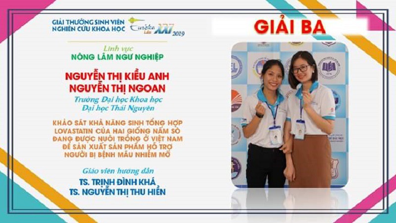 Năm 2019, Giải thưởng sinh viên nghiên cứu khoa học toàn quốc Euréka được tổ chức lần thứ 21. Giải thưởng năm nay thu hút sự tham gia của 2069 sinh viên với 858 đề tài đến từ 100 trường đại học và cao đẳng trong cả nước. Vượt qua vòng chấm sơ loại và bán kết toàn quốc, vòng chung kết là sự tranh tài của 156 đề tài đến từ 72 trường đại học và cao đẳng. Trường Đại học Khoa học – Đại học Thái Nguyên vinh dự có đề tài: Khảo sát khả năng sinh tổng hợp lovastatin của hai chủng nấm sò nuôi trồng ở Việt Nam để sản xuất sản phẩm hỗ trợ người bị bệnh máu nhiễm mỡ do nhóm sinh viên Nguyễn Thị Kiều Anh, Nguyễn Thị Ngoan – Khoa Công nghệ sinh học thực hiện dưới sự hướng dẫn của TS. Trịnh Đình Khá – Khoa Công nghệ sinh học – Trường Đại học Khoa học và TS. Nguyễn Thị Thu Hiền – Trường Đại học Nông lâm đã xuất sắc lọt vào vòng chung kết.